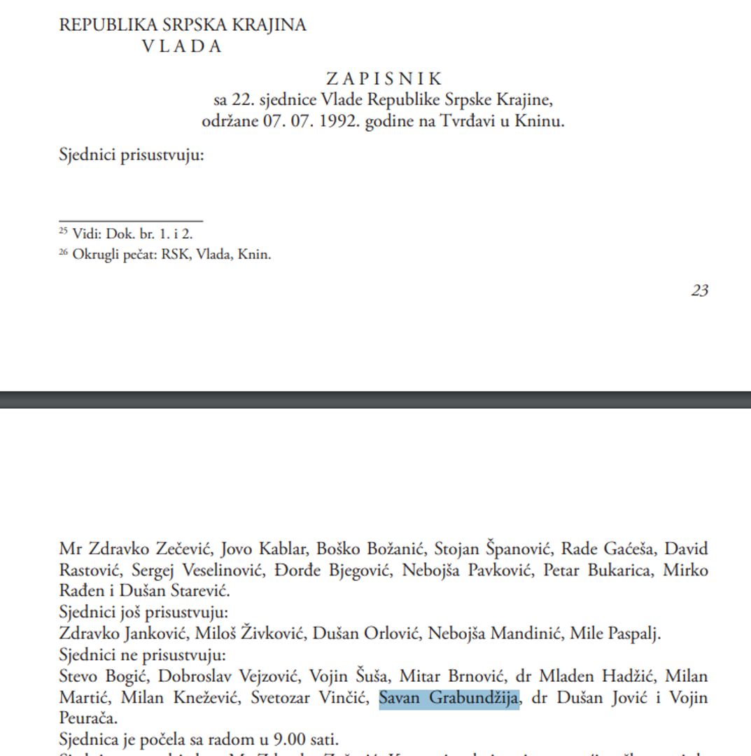 Istodobno smo našli i "skraćeni zapisnik 23. zajedničke sjednice svih vijeća Sabora RH održane 13./14. veljače 1992. u Zagrebu koju je vodio dr. Žarko Domljan. U zapisniku su navedeni zastupnici koji su se predsjedniku Sabora ispričali zbog izostanka, a zatim se navodi popis zastupnika koji nisu bili na sjednici i na tom je popisu i Savan Grabundžija. Dakle, u Hrvatskom saboru tada je i dalje formalno bio saborski zastupnik iako je godinu prije najavio bojkot te potom sudjelovao u pobuni protiv Hrvatske, angažmanom i u pobunjeničkoj vladi. Za te okolnosti nije kriv Ustavni sud, a na hrvatskim je institucijama da eventualno obrazlože treba li se na slučaj Savana Grabundžije mehanički, doslovno primjenjivati ondašnji hrvatski propisi s obzirom na sve okolnosti ili se u presuđivanje mogu i moraju unijeti i moralni kriteriji s obzirom na sve okolnosti.