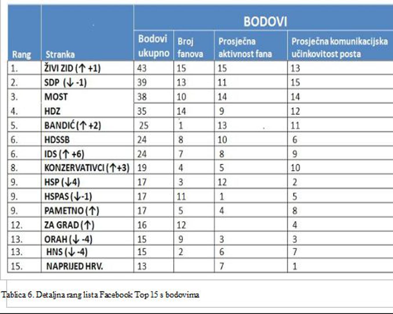 Pored Živog zida, uspješnost svoje komunikacije u izbornoj kampanji poboljšali su i Bandićeva stranka, IDS i Hrvatski konzervativci, a pogoršali SDP i HSP Ante Starčević za jedno, a ORAH, HNS i HSP za četiri mjesta. Most, HDZ i Naprijed Hrvatska ostali su na pozicijama koje su imali i u rujnu. Dvije nove stranke koje su se uspješno plasirale na listu Facebook Top 15 u listopad u su Pametno i Za Grad, a s liste su u odnosu na rujan ispali Laburisti i HSLS. Treba imati na umu da na sve pokazatelje komunikacijske uspješnosti stranaka na Facebooku direktno utječe oglašavanje, za koje nažalost podaci nisu javno dostupni.