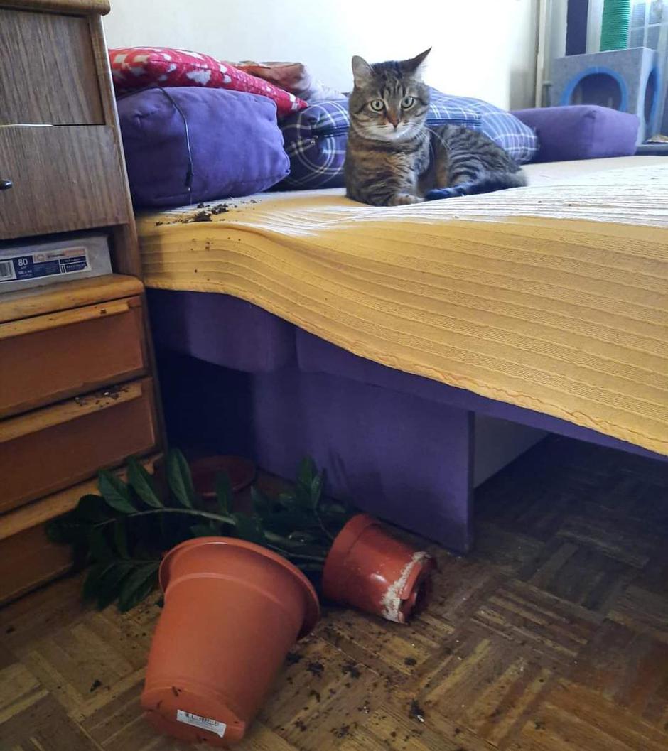 – Svaka mačka je drukčija, Žuti i Kumica su mirniji i zapravo ih Zlo stalno izaziva. I bilo bi dobro da je samo to. Nema dana kad nešto ne smisli i ne napravi nam neku spačku. Uz njega nam nikad ne može biti dosadno. Stalno radi neki nered, izvrće mi cvijeće, prolijeva vodu – opisuje nam zašto je Zlo dobio ime Zlo. I da ne bi bilo zabune, ništa to nije slučajno, ništa se ne događa zato što nema jednu nogu pa je nespretan. Savršeno se on snalazi s tri noge, penje se, skače, hoda po rubu ograde na balkonu kojeg su zbog sigurnosti zatvorili mrežom. Sve ove nepodopštine Zlo radi namjerno. Onako, iz gušta!