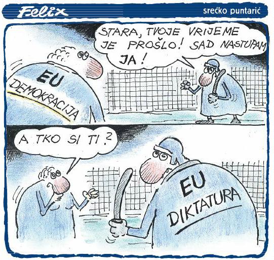 ... Kad već nije prošla EU Demokracija neće proći ni EU Diktatura. Jedini svijetli izlaz su Sjedinjene Države Europe, Azije i Afrike, tzv. EAA. ... Hoće li se toga netko dosjetiti i umjesto maltretiranja ponudi narodima napredak i razvoj, ili treba za to poginuti još milijardu ljudi da bi vođama došlo iz onog mjesta u glavu?