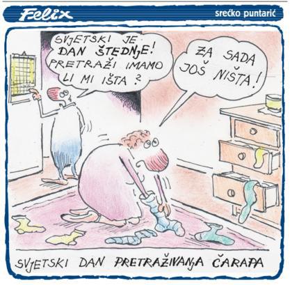 Od 246 milijardi kuna ušteđevine hrvatskih građana, draga moja, svakome od nas pripada 60 tisuća ... Daj pogledaj malo bolje, … mi zajedno imamo 120 tisuća kuna ... Gdje smo to sakrili? .... A susjedi se hvale da imaju 240 tisuća ušteđevine. ... A 200 njihovih susjeda, pak, priča da su uštedjeli svaki po milijardu, ... . Pa sad mi je sinulo .... Nemoj više prevrtati te stare čarapa. Rađe pogledaj 'a gdje je tu račun', … mislim njihov.