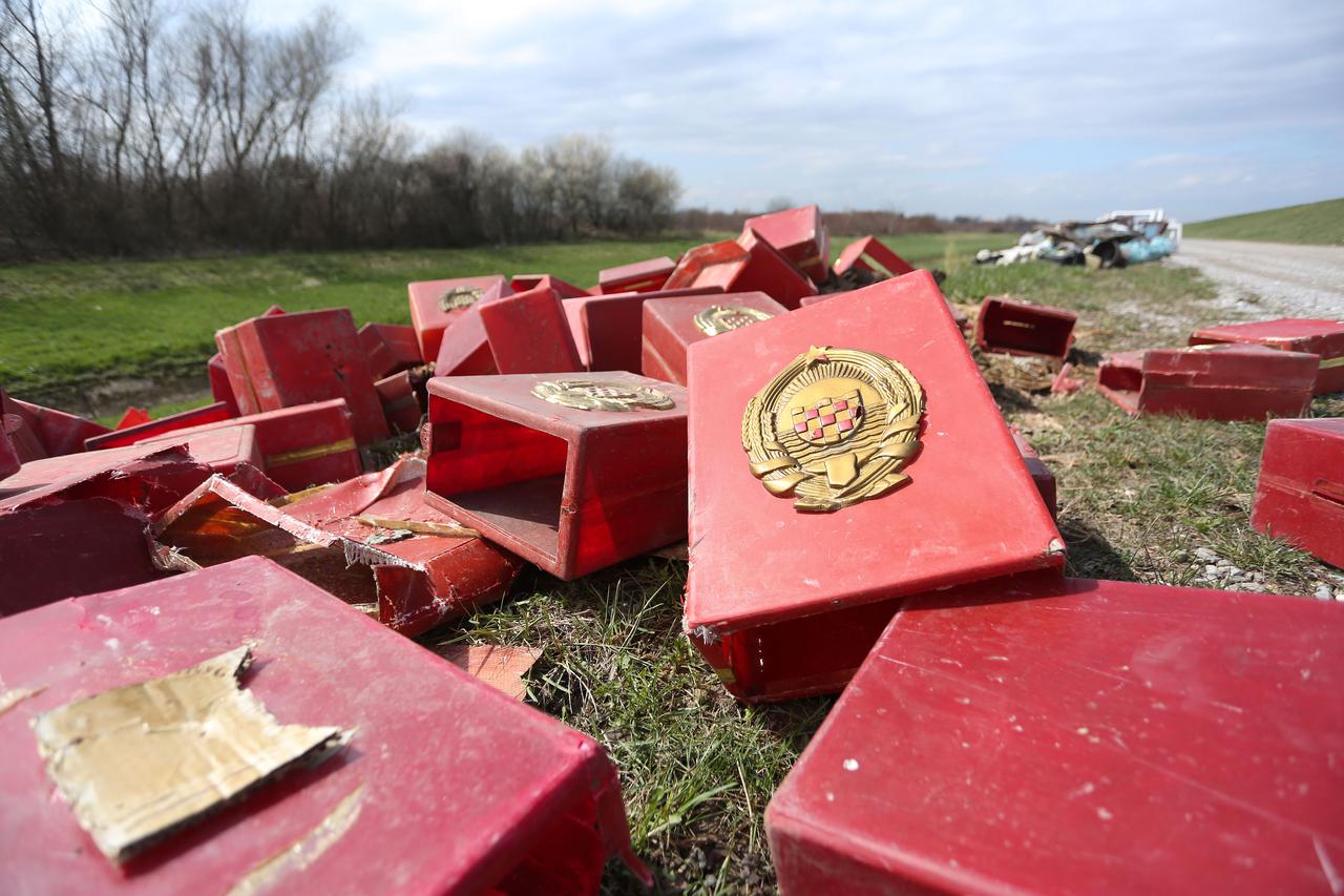 Približno 300 glasačkih kutija još iz bivše Jugoslavije već tjednima stoji u oteretnom kanalu Sava – Odra u blizini Lučkog. Da su to ostaci nekih prošlih vremena, vidi se po grbu koji stoji na crvenim kutijama, a na gomilu smeća upozorio je Davor Tomaško, vijećnik MO-a Blato, u čijem kvartu, kaže, postoji još divljih deponija.