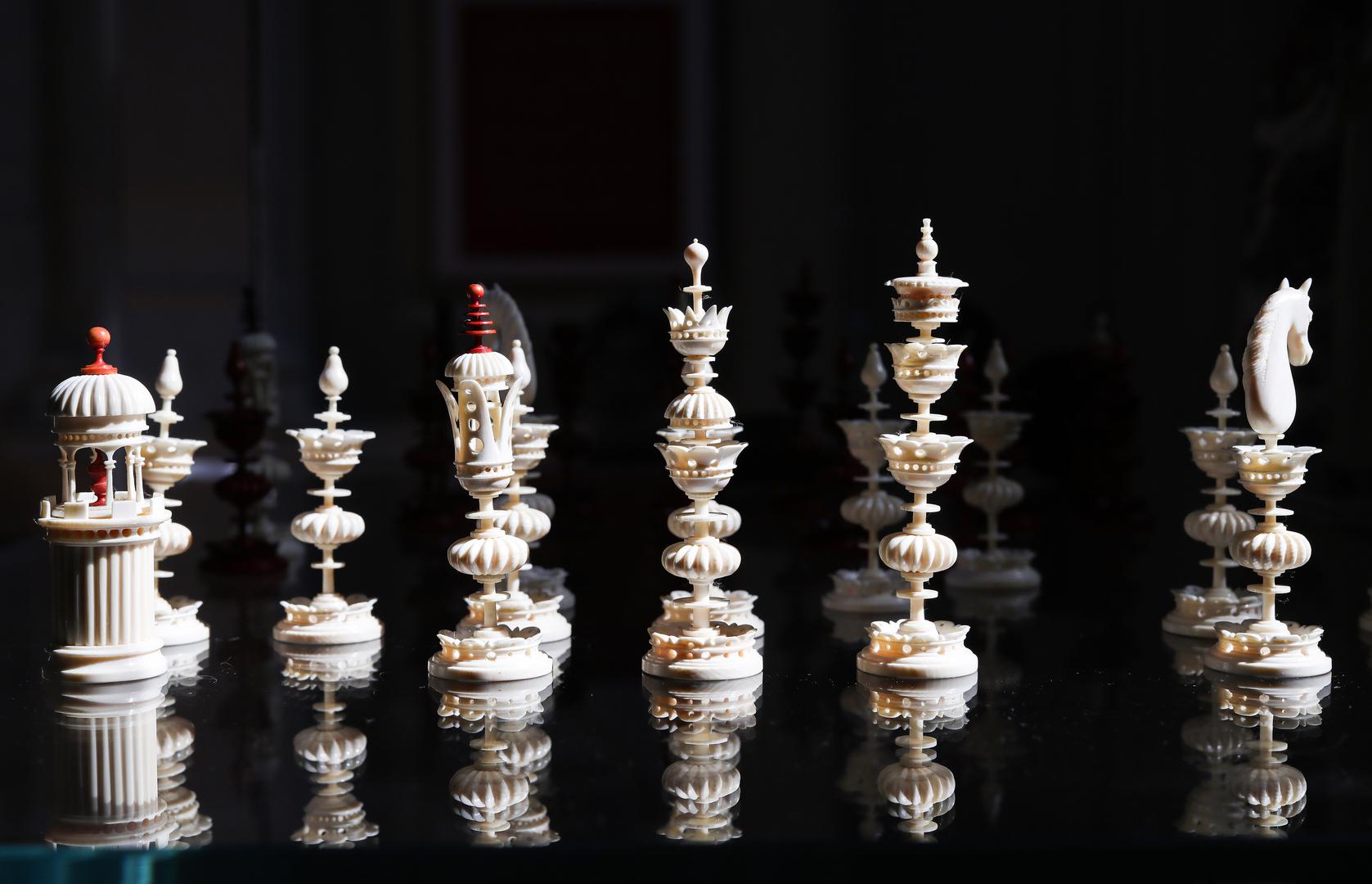 15.06.2021., Zagreb - Postav prve gostujuce izlozbe megaprojekta Igracke- djetinjstvo zauvijek. Figure za sah izradjene od slonovace za Baana Josipa Jelacica. Photo: Emica Elvedji/PIXSELL
