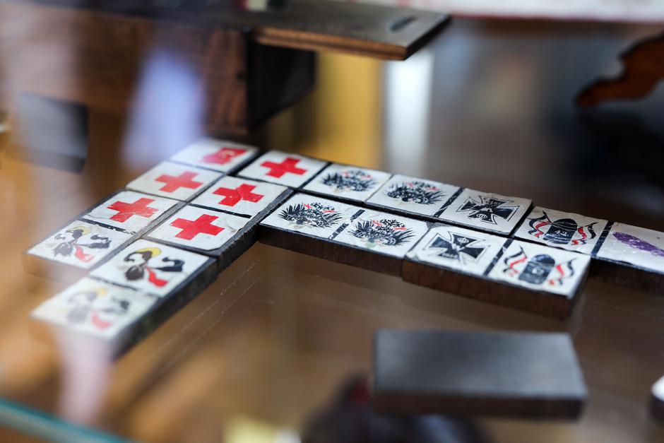 Pažnju privlači i propagandni set za domino iz Prvog svjetskog rata s obilježjima Centralnih sila, Njemačke, Austro-Ugarske Monarhije i Osmanskog Carstva.