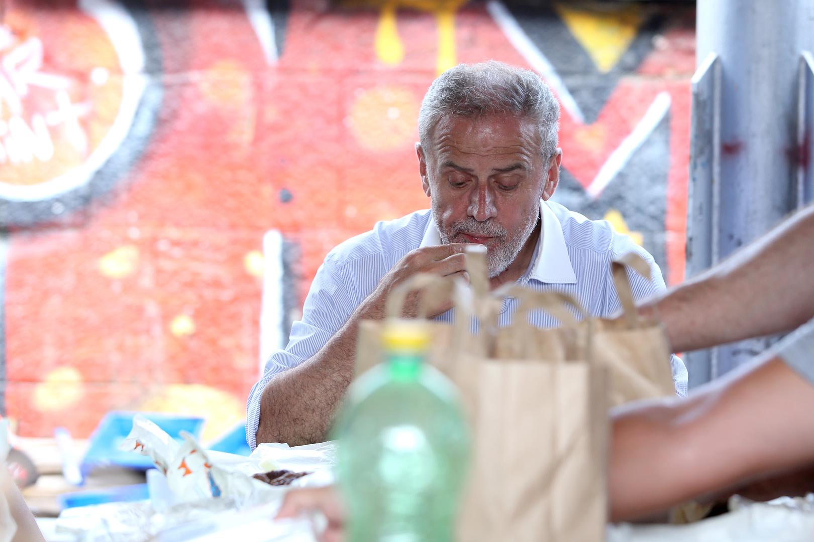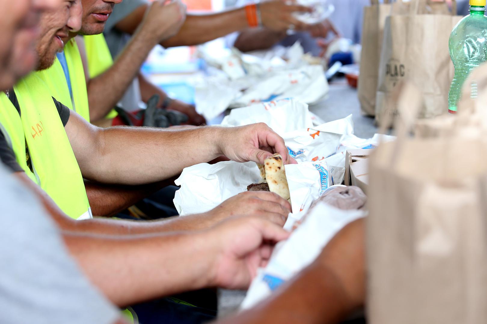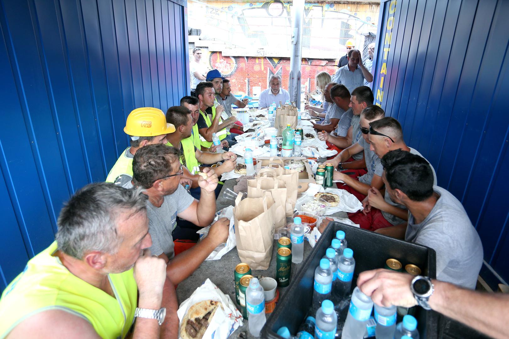 Nakon obilaska gradilišta, radnike je iznenadio s ćevapima i vodom koje su oni slasno pojeli.