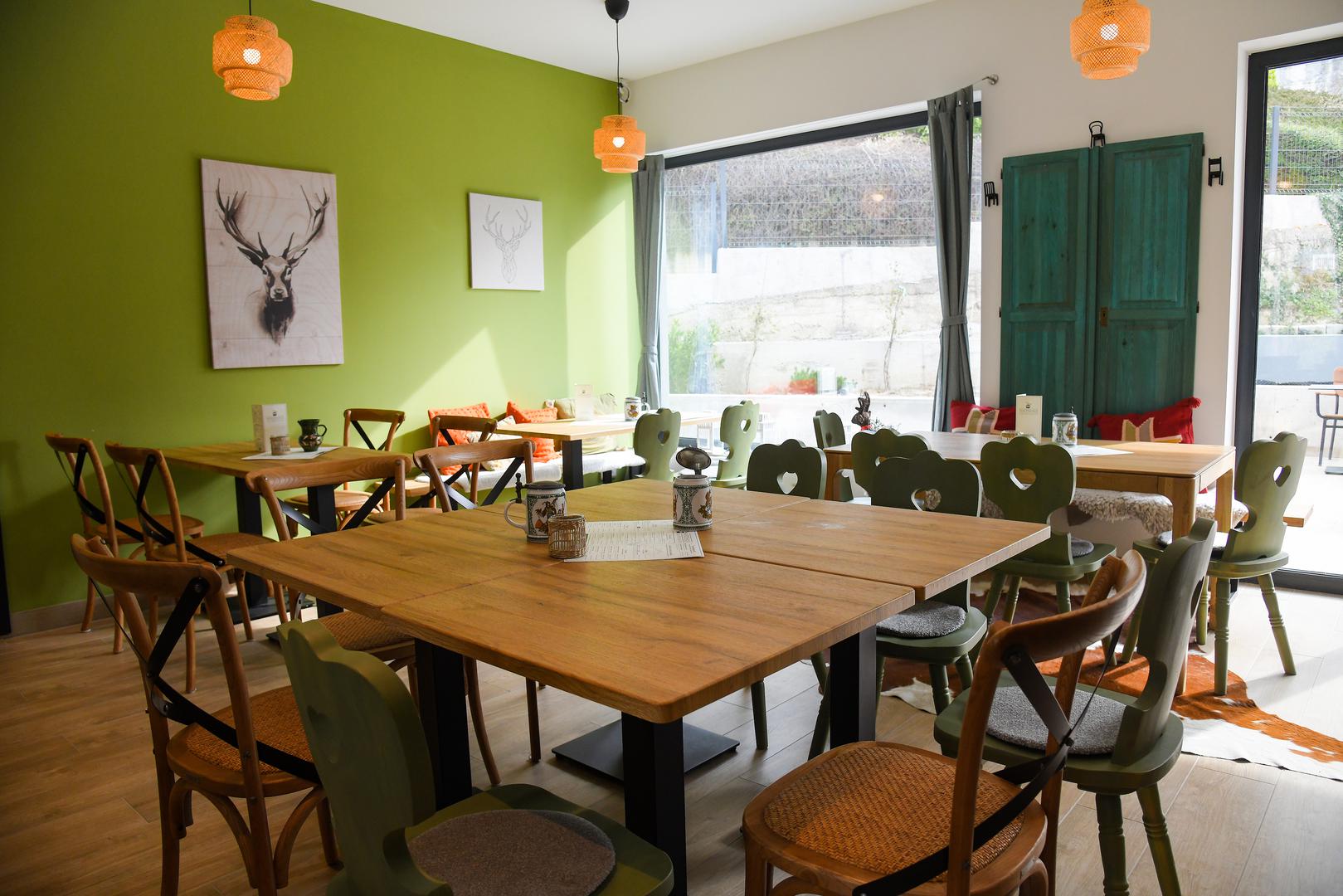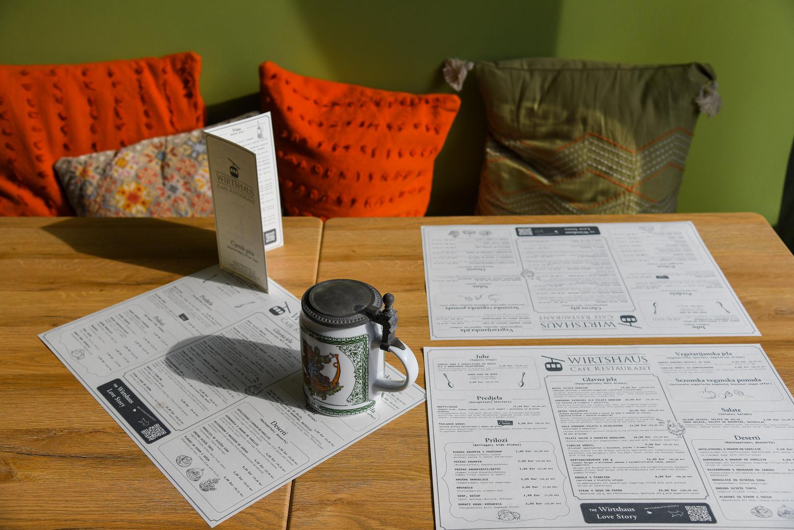 Wirtshaus je stari njemački naziv za gostionicu, a njihova je inspirirana onakvom kakva se može posjetiti u austrijskim skijalištima. Stoga se već s ulaza zamjećuju šareni naslonjači i drveni stolci s izrezbarenim detaljima. Na svakom su stolu oslikane dekorativne posudice koje kao da prenose priče s alpskih obronaka kroz različita godišnja doba, a skijaškoj idili pridonosi i kamin koji uvečer grije goste. Imaju i stražnju terasu, a s toplijim vremenom planiraju urediti još dvije.