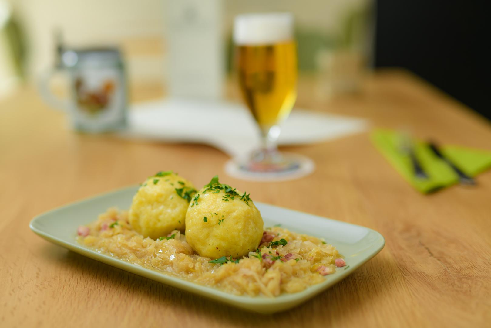Kušamo i knedle s čvarcima servirane s kiselim zeljem, što stoji osam eura. Oduševljava nas punjenje i mekoća tijesta, a zanimljivi su i nepcu poznati čvarci u nešto drukčijem obliku od onoga na koji smo se naviknuli. Kupus i okruglice domaće su proizvodnje, a ona je prvo pravilo supružnika.