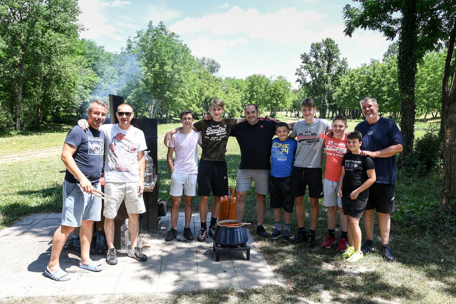 – Baš morate probati ovaj cušpajz. Nije težak za želudac jer nema zapršku, a u njemu ima sve – pršuta, slavonske kobasice, špeka, četiri vrste graha, leće. Posebna domaća receptura – sa smiješkom nas poziva Hrvoje Paić, a roštilj-majstor Goran Petrić pored njega na gril baca pljeskavice i ćevape. I njima se sviđa, kažu, družiti na ovoj lokaciji jer je manje gužve nego na drugima, a isto nam je rekao i Ibro Begović, koji je onamo s obitelji došao na proslavu rođendana i također nas ponudio najboljim iz svoje “kuhinje” – svinjskom vratinom koju je “napacao” Vegetom, soli, paprom i uljem.