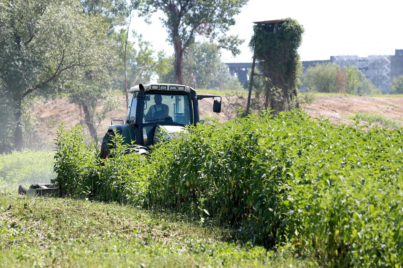 Na licu mjesta, već nakon prolaska ulazne rampe, zatekli smo radnike koji pilama i škarama čiste ono što strojevi nisu mogli. Malo dalje u akciji je bio i veliki malčer koji je uništavao sve raslinje tanje od 10 centimetara.