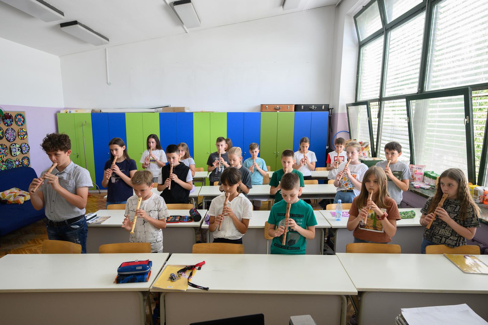 Margareta Muratović, učenica četvrtog razreda, blokflautu je toliko zavoljela da je svira i kod kuće. Ipak, na početku nije bilo lako, priznaje. – Kada smo prvi put vidjeli kutiju s instrumentima koju je učiteljica donijela, svi smo se malo začudili – govori Margareta, kojoj je, dodaje, najizazovnije bilo koncentrirati se na sviranje dok netko pored nje pjeva. Kao i na dvoglasno sviranje, u kojemu su svi đaci iz 4. c razreda sada pravi majstori.