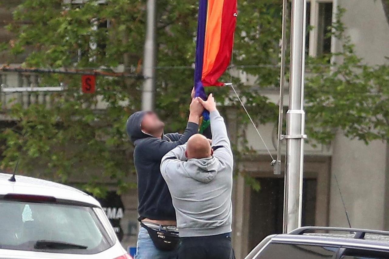 Dvojac pokušao skinuti zastavu duginih boja, pobjegli kada su shvatili da ih snimaju kamere