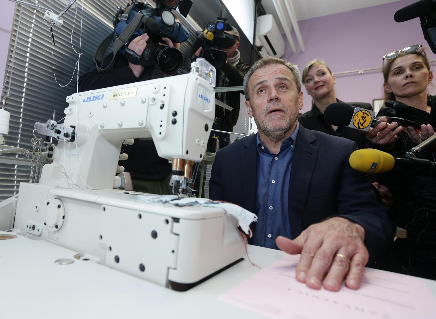 – Neka svi političari koji će ići na izbore za Europarlament kupe po jedan šivaći stroj za ove žene umjesto da troše na plakate - poručio je gradonačelnik Bandić u prostorijama Kamenskog na Knežiji.