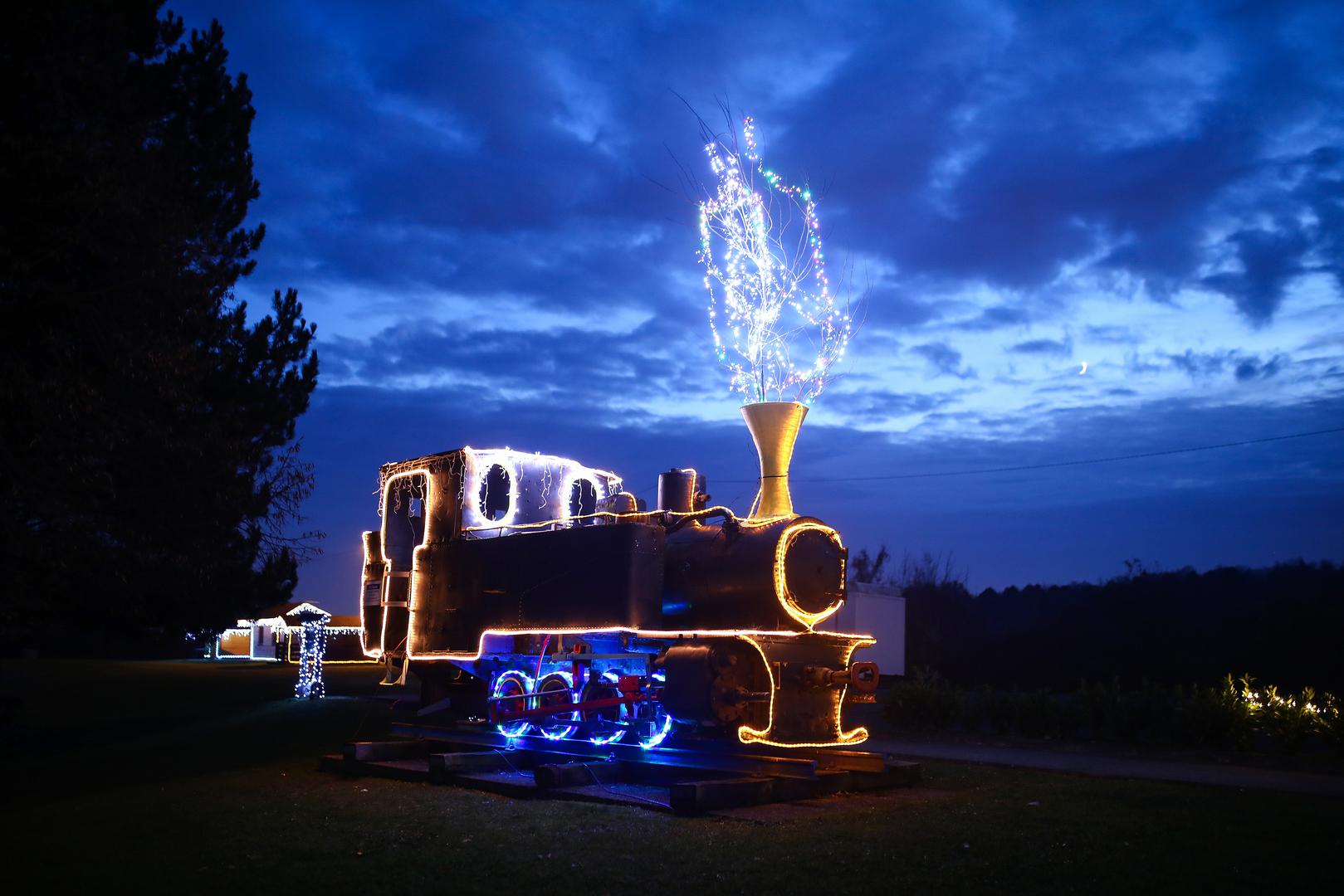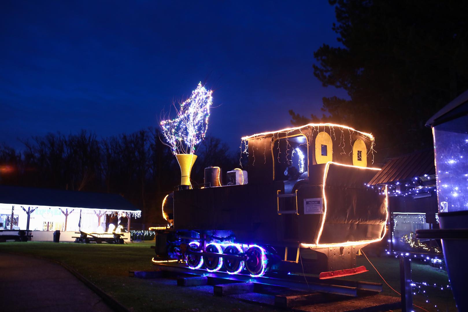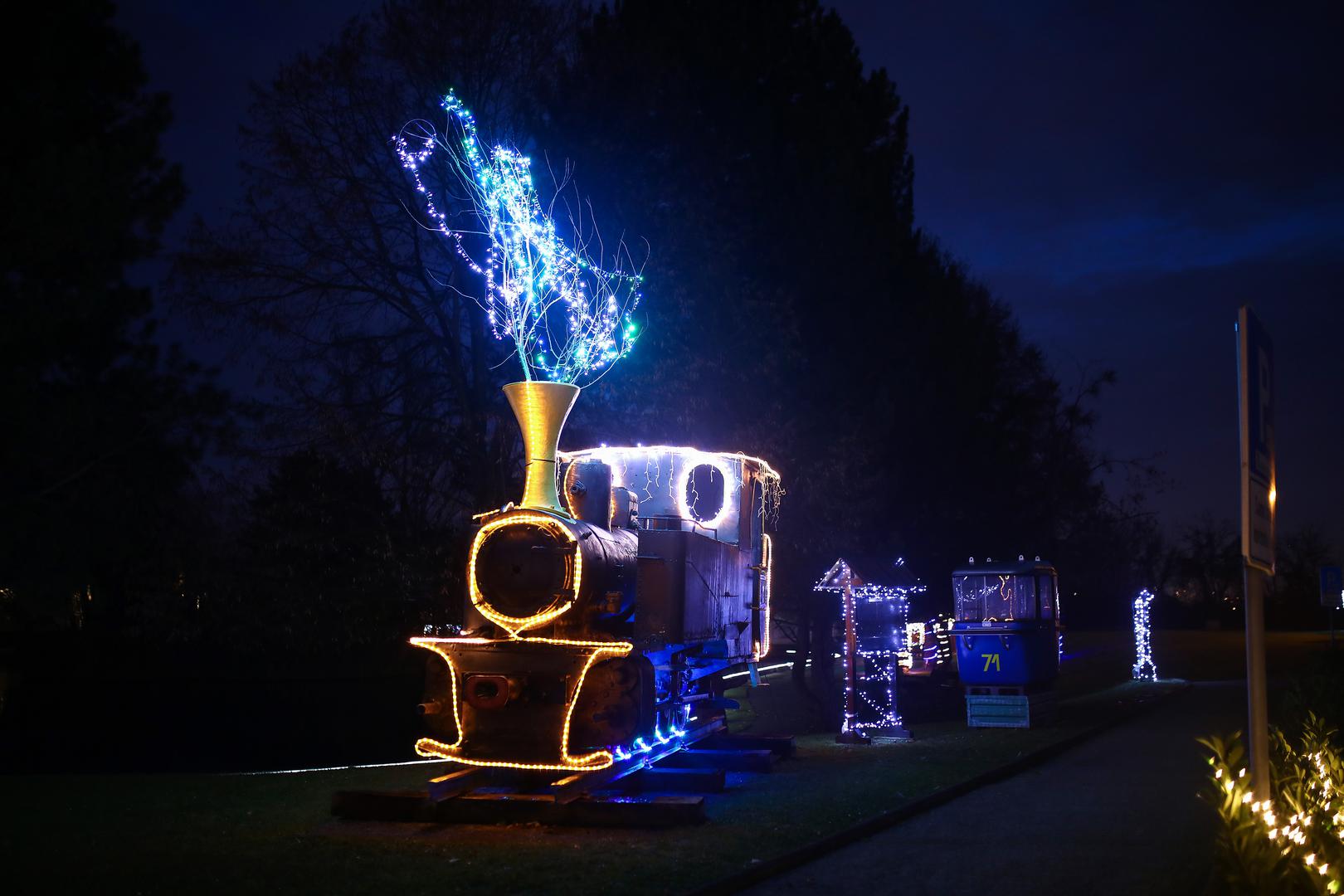 Tisuće lampica raskošno osvjetljavaju jezero i staru lokomotivu koja je nekoć prolazila kroz naselja Granešina, Novaki i Miroševec