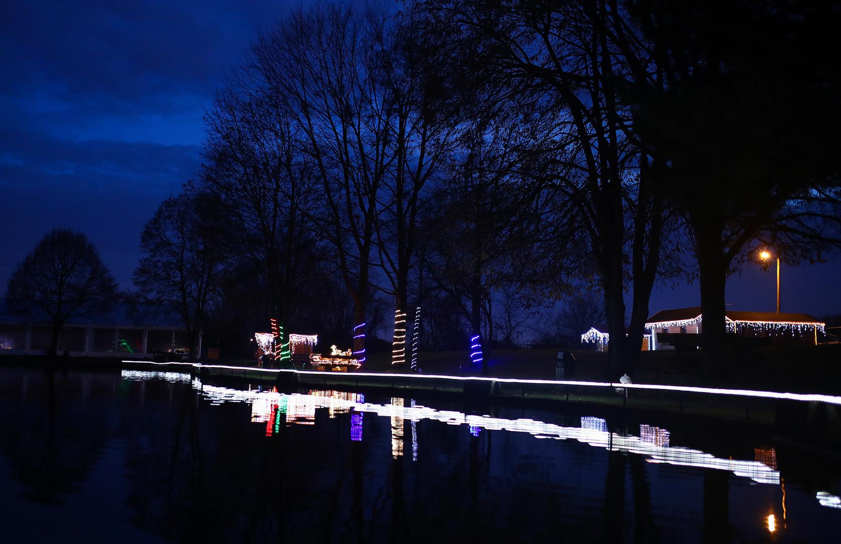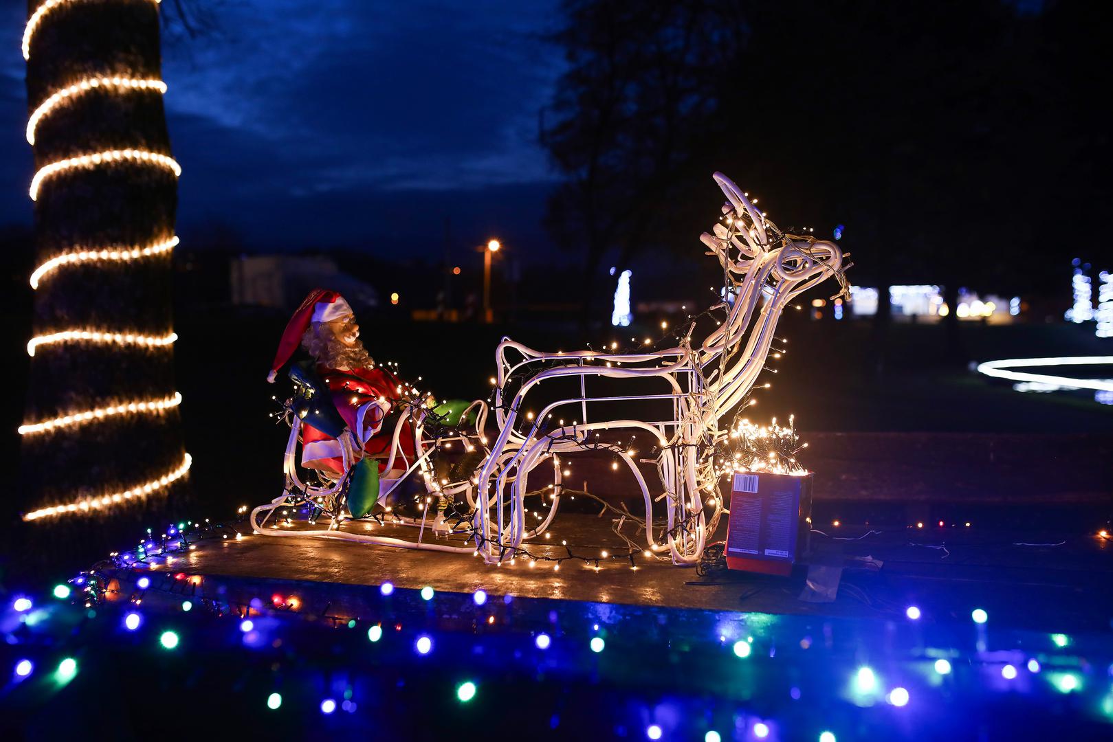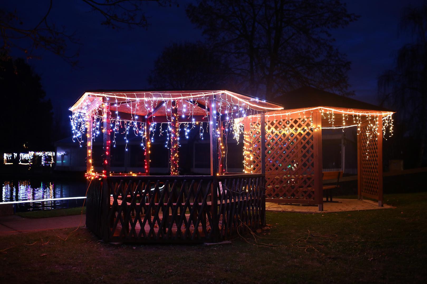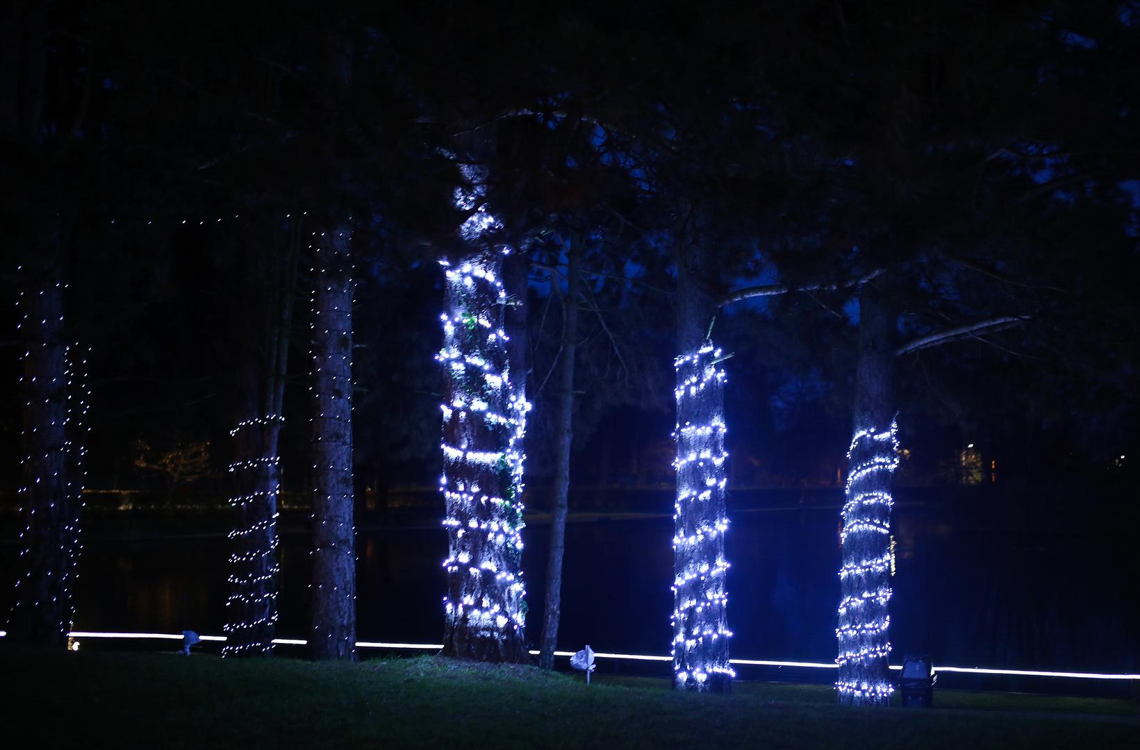 Tisuće lampica raskošno osvjetljavaju jezero i staru lokomotivu koja je nekoć prolazila kroz naselja Granešina, Novaki i Miroševec