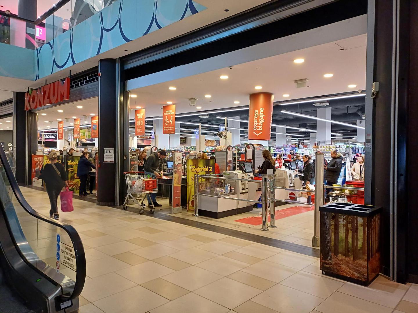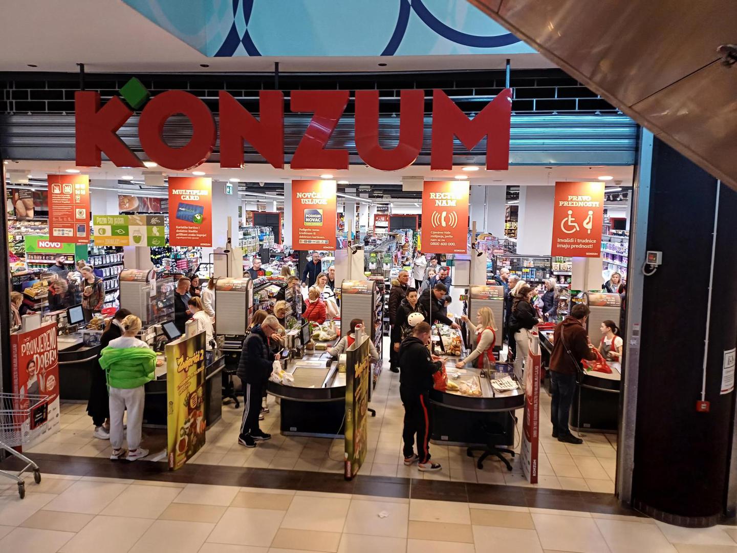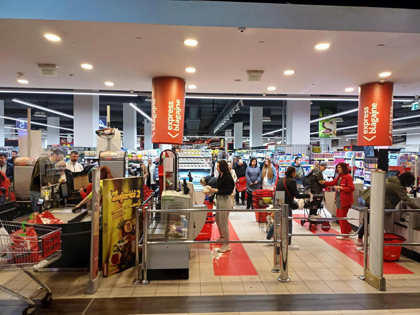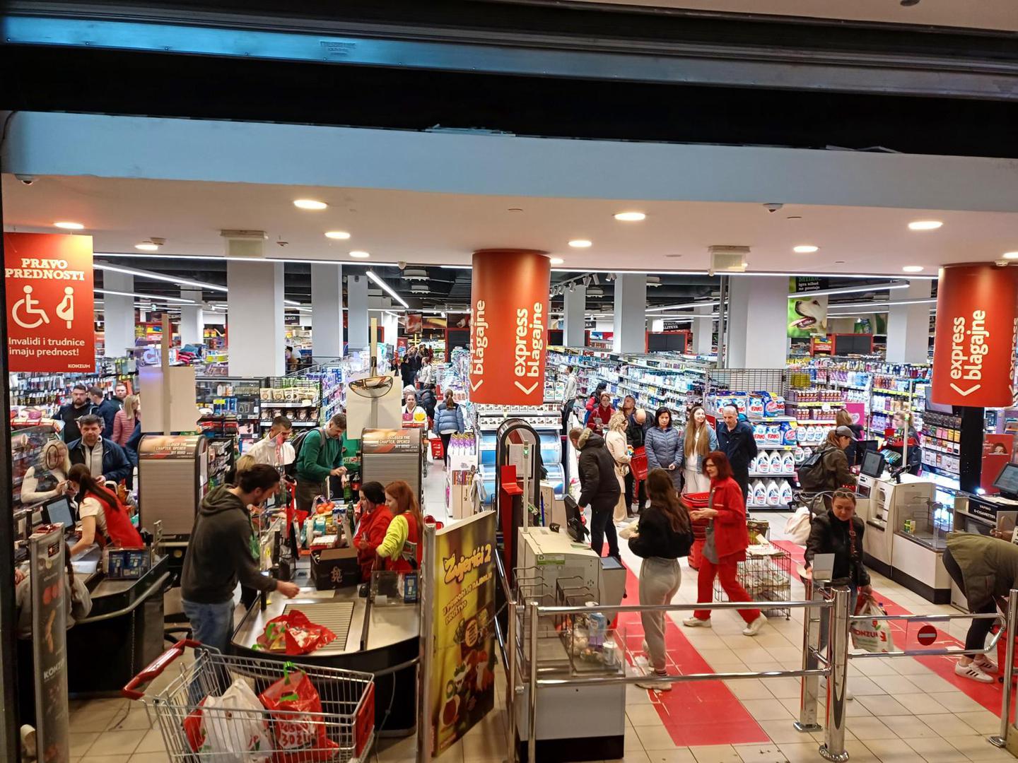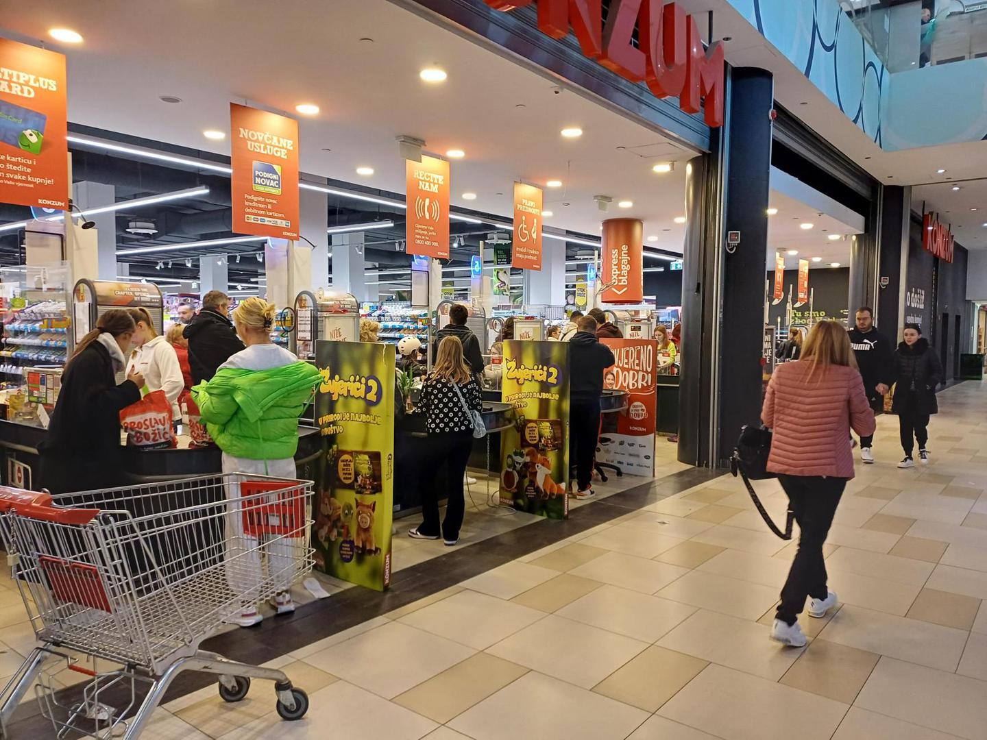 U trgovačkom centru Point gužva je najzamjetnija definitivno u Konzumu gdje rade gotovo sve blagajne, što se inače nikada ne događa, a i dalje je na svima red.