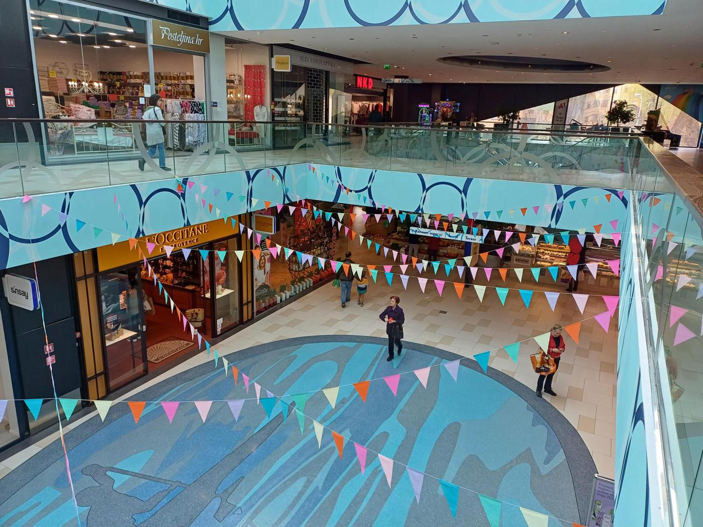 Ostatak centra zapravo je relativno prazan, osim sunčane terase na krovu, dok u DM-u zaposlenice kupcima zamataju poklone.