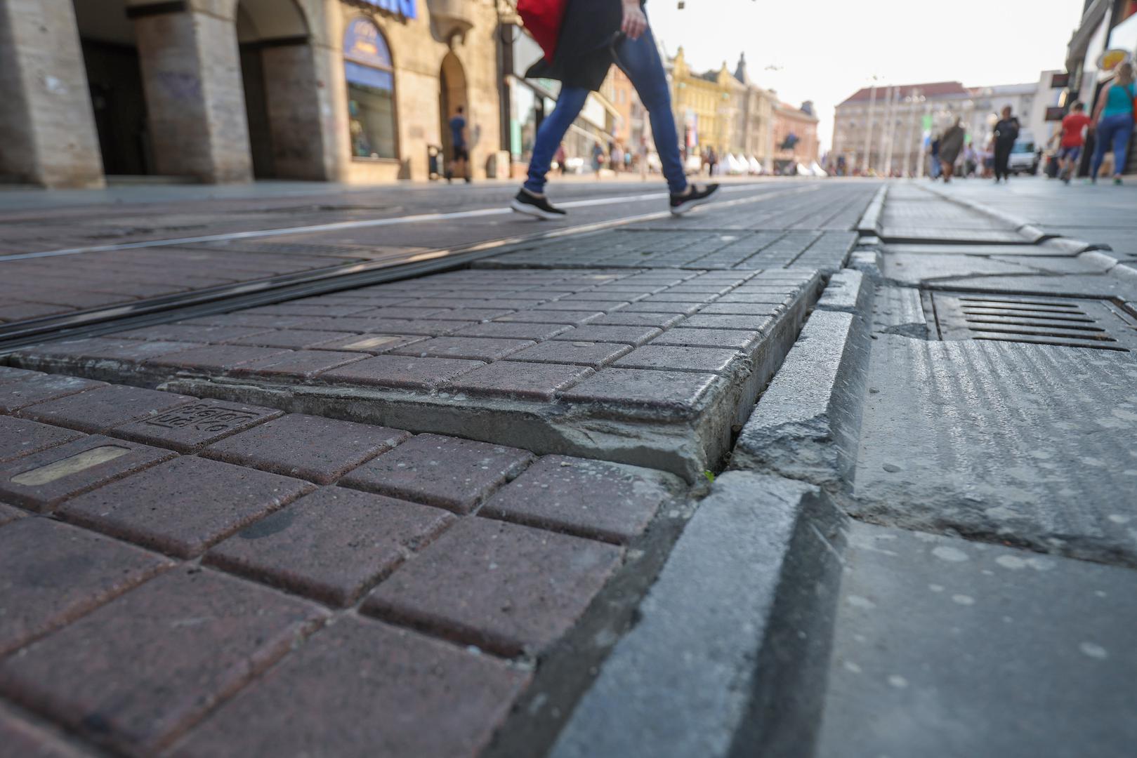 Na kratkom potezu od svega 400 metara, od Trga bana Josipa Jelačića pa do Preobraženske ulice, stanje betonskih ploča uz prugu i nije u tako dobrom stanju.