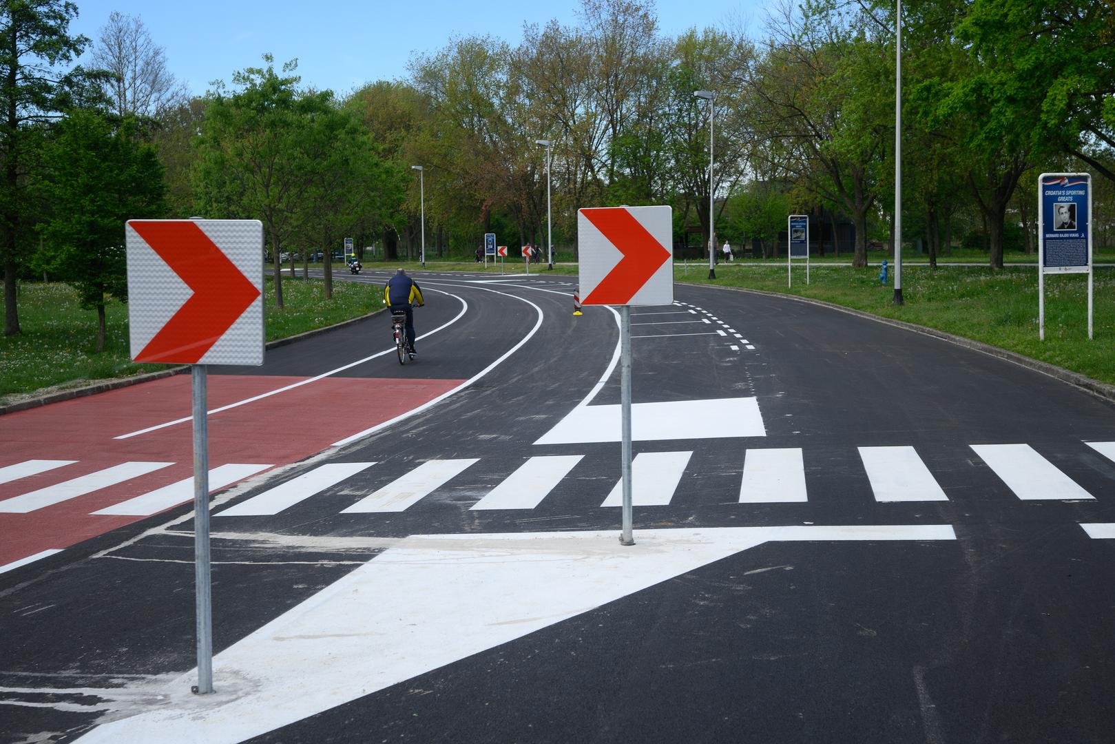Nova prometna regulacija uvodi dva prometna traka za dvosmjeran biciklistički promet na unutarnji obod Aleje Matije Ljubeka, bliže jezeru, što je, kako su istaknuli u Gradu, znatno sigurnije od dosadašnjeg rješenja, a radi izbjegavanja presijecanja biciklističkog prometa i motornih vozila.