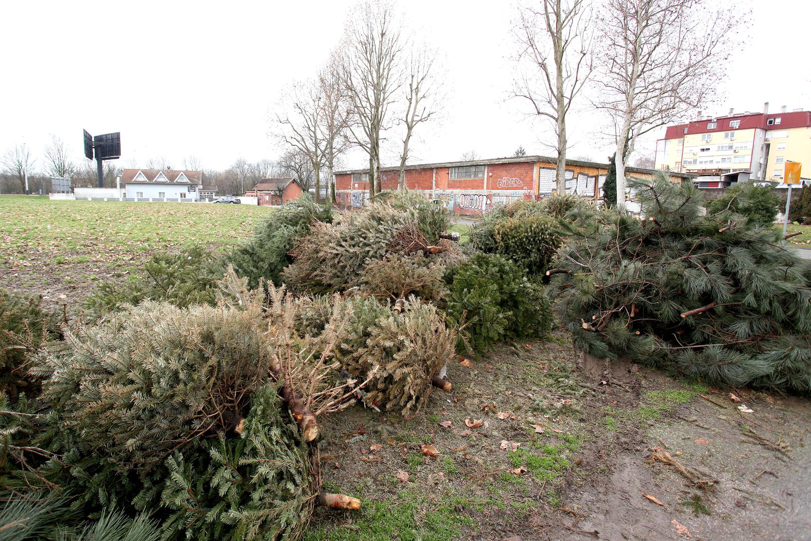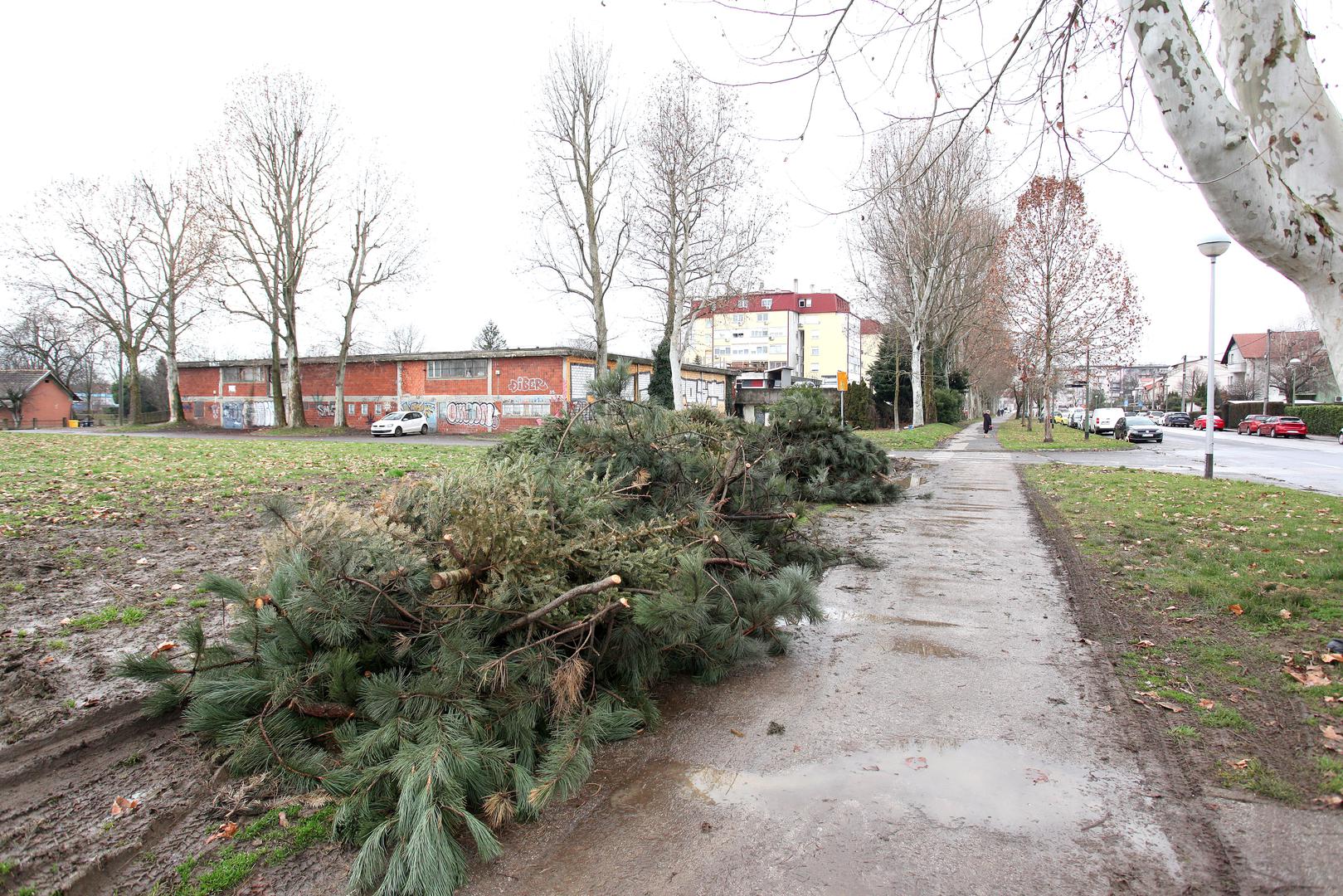 Ista situacija je i s borovima u Ulici Platana u naselju Rekovec koji su prošlog tjedna i dalje stajali uredno posloženi na zelenu površinu dostupnu za vozila.