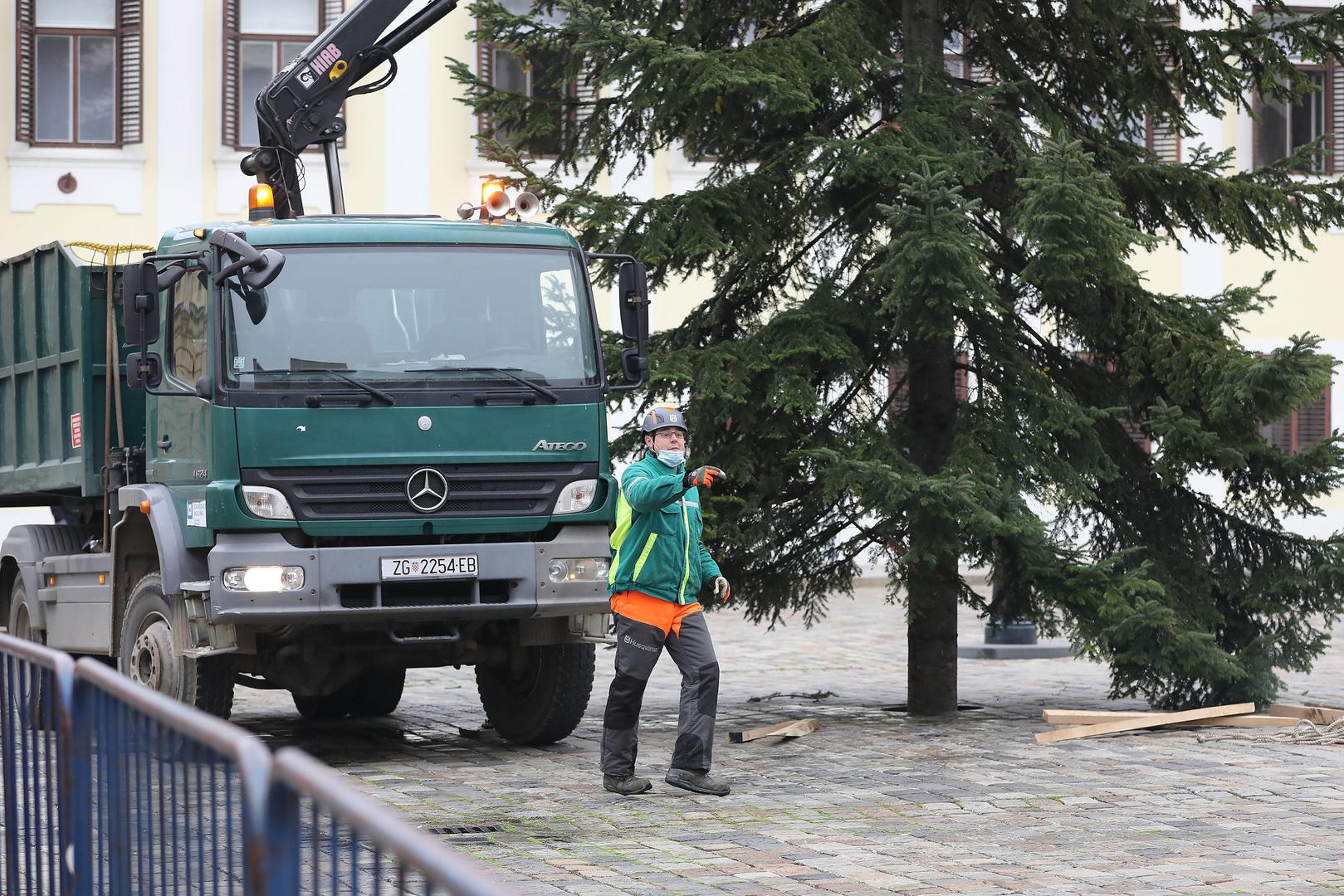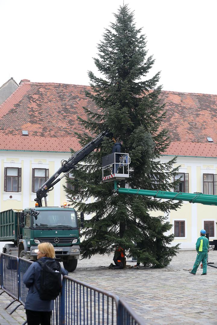 FOTO Prolaznici u čudu promatrali postavljanje masivnog bora na Markovom trgu
