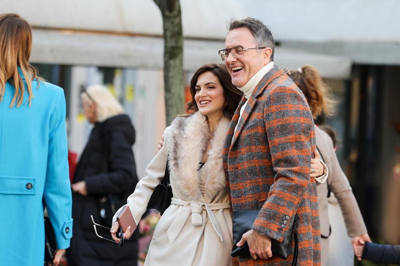 Poznati televizijski voditelj i glumac Tarik Filipović prošetao je sa suprugom Lejlom Cvjetnim trgom. Nasmiješeni i raspoloženi par spremno je pozirao za fotografije.