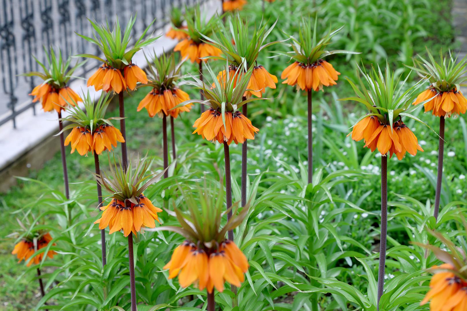 Među njima se posebno ističe carska krunica, poznata i kao carska kockavica ili carska kruna, zasađena uz kip svetog Jurja kod Kamenitih vrata.