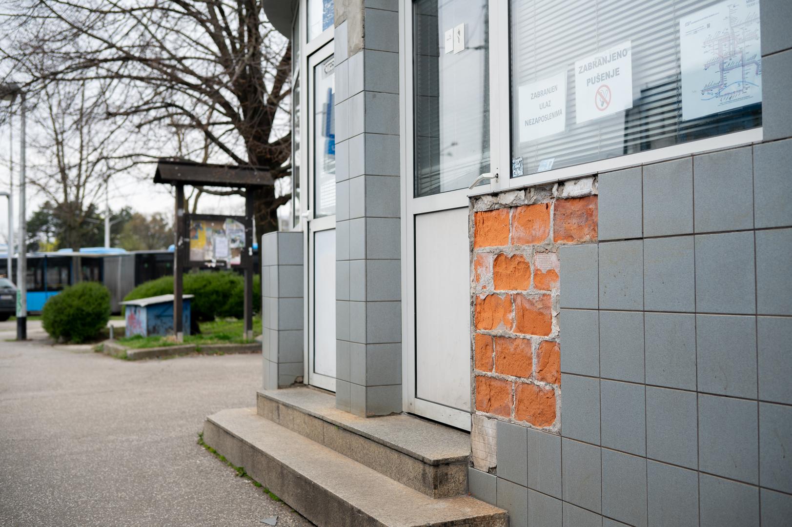 Na okretištu Borongaj vidljiva su oštećenja na objektu ZET-a, gdje je dio fasade otpao i otkrio ciglu ispod pločica