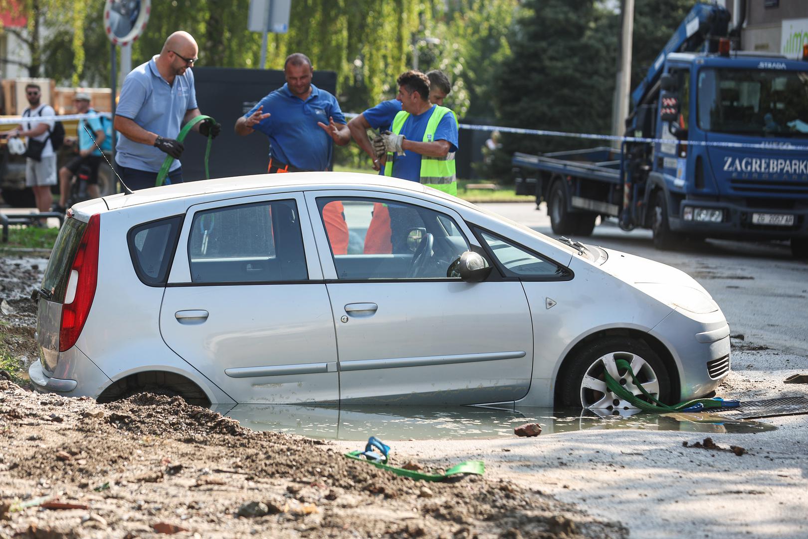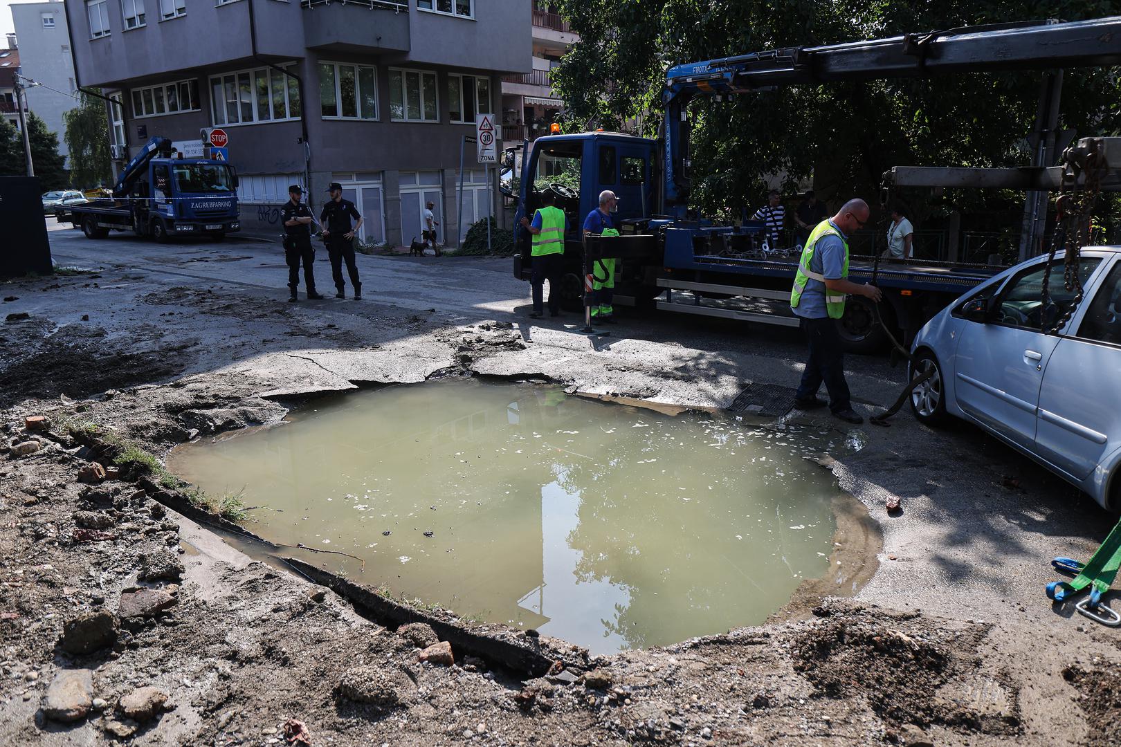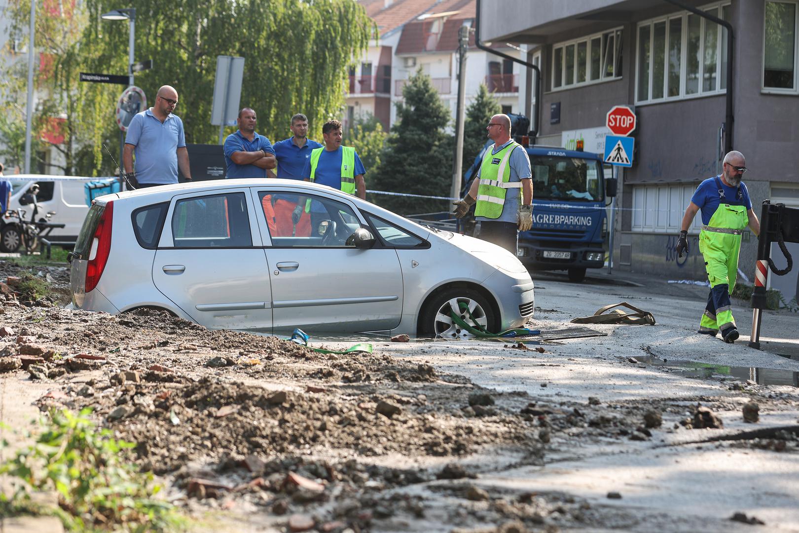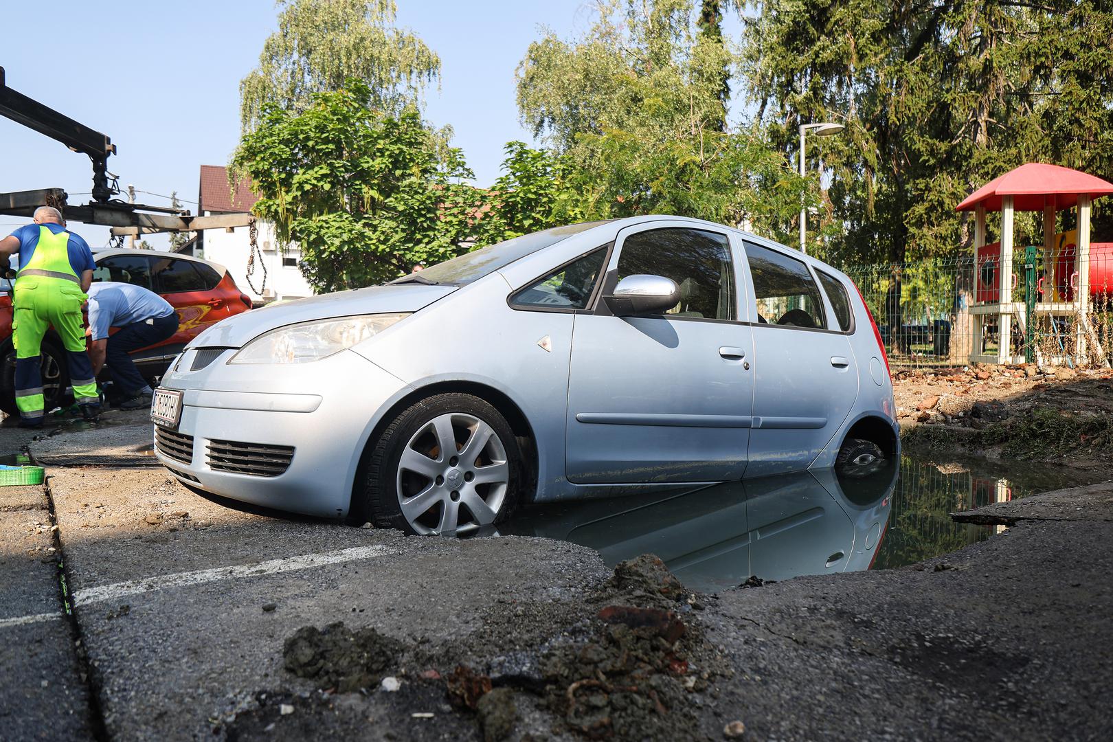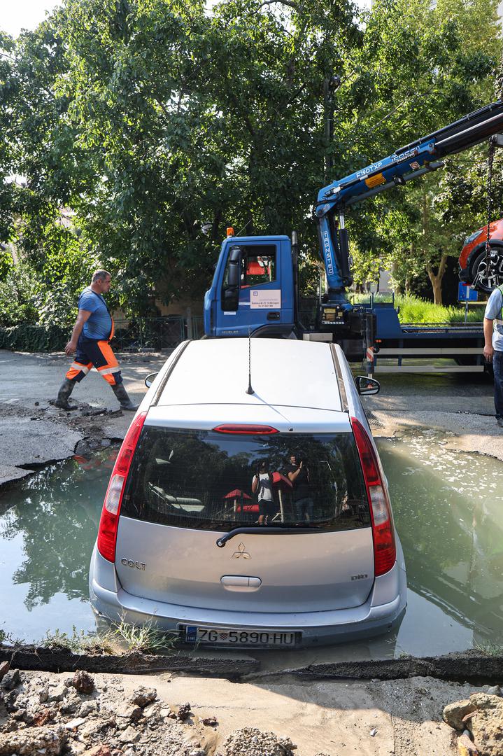 Dva automobila gotovo su "propala u zemlju" u Kostelskoj ulici na Trešnjevci nakon puknuća cjevovoda, prema svjedočenju fotografija koje su jutros stigle s mjesta događaja.