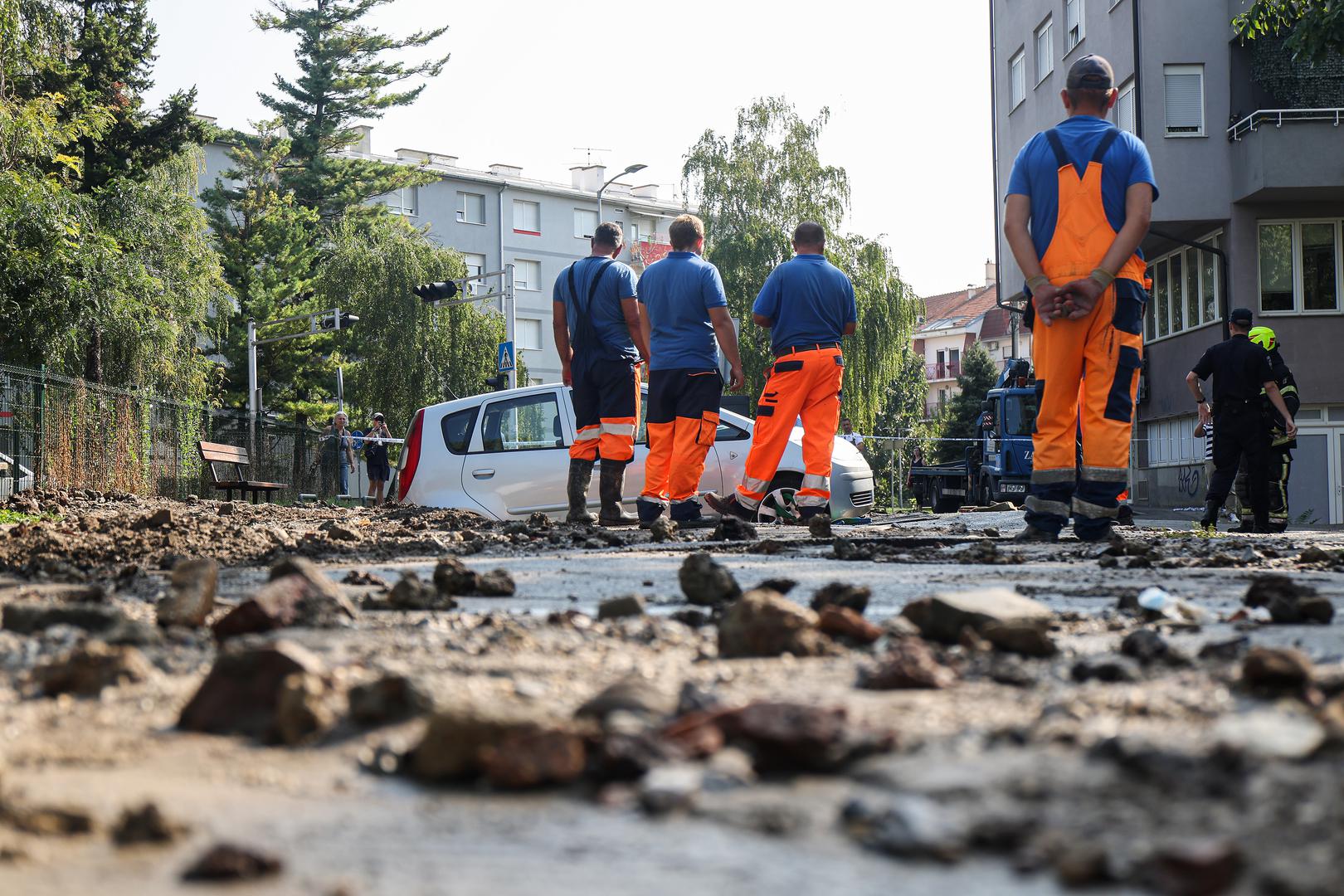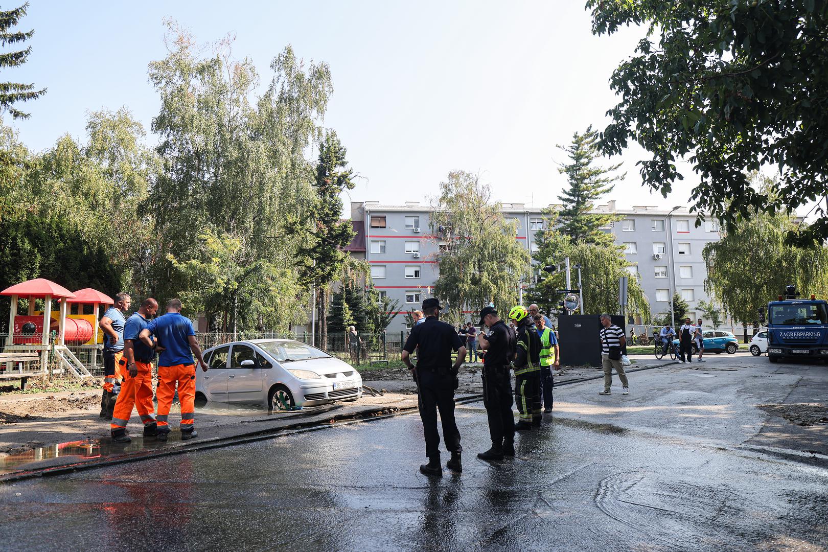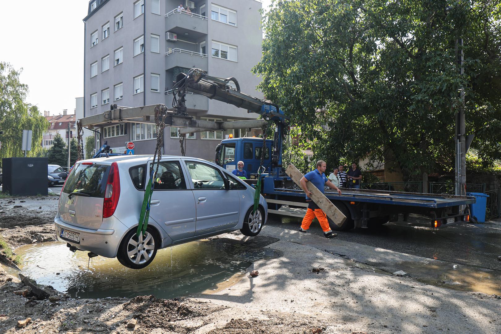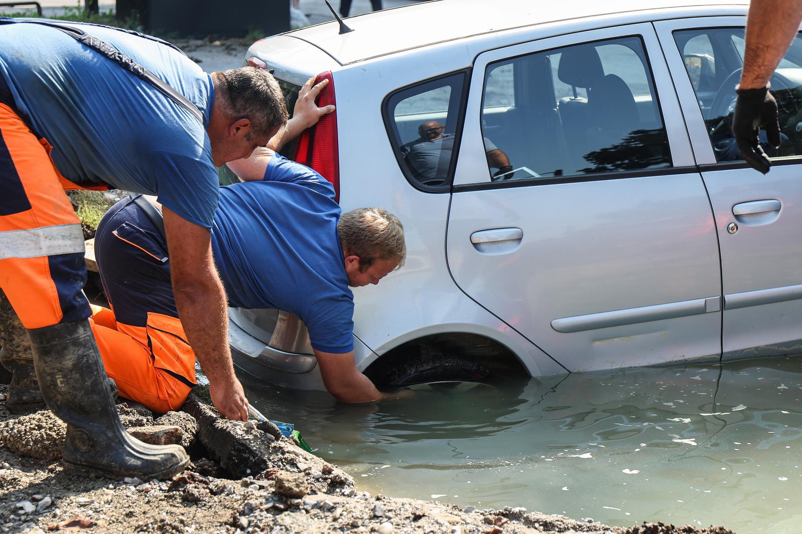Dva automobila gotovo su "propala u zemlju" u Kostelskoj ulici na Trešnjevci nakon puknuća cjevovoda, prema svjedočenju fotografija koje su jutros stigle s mjesta događaja.