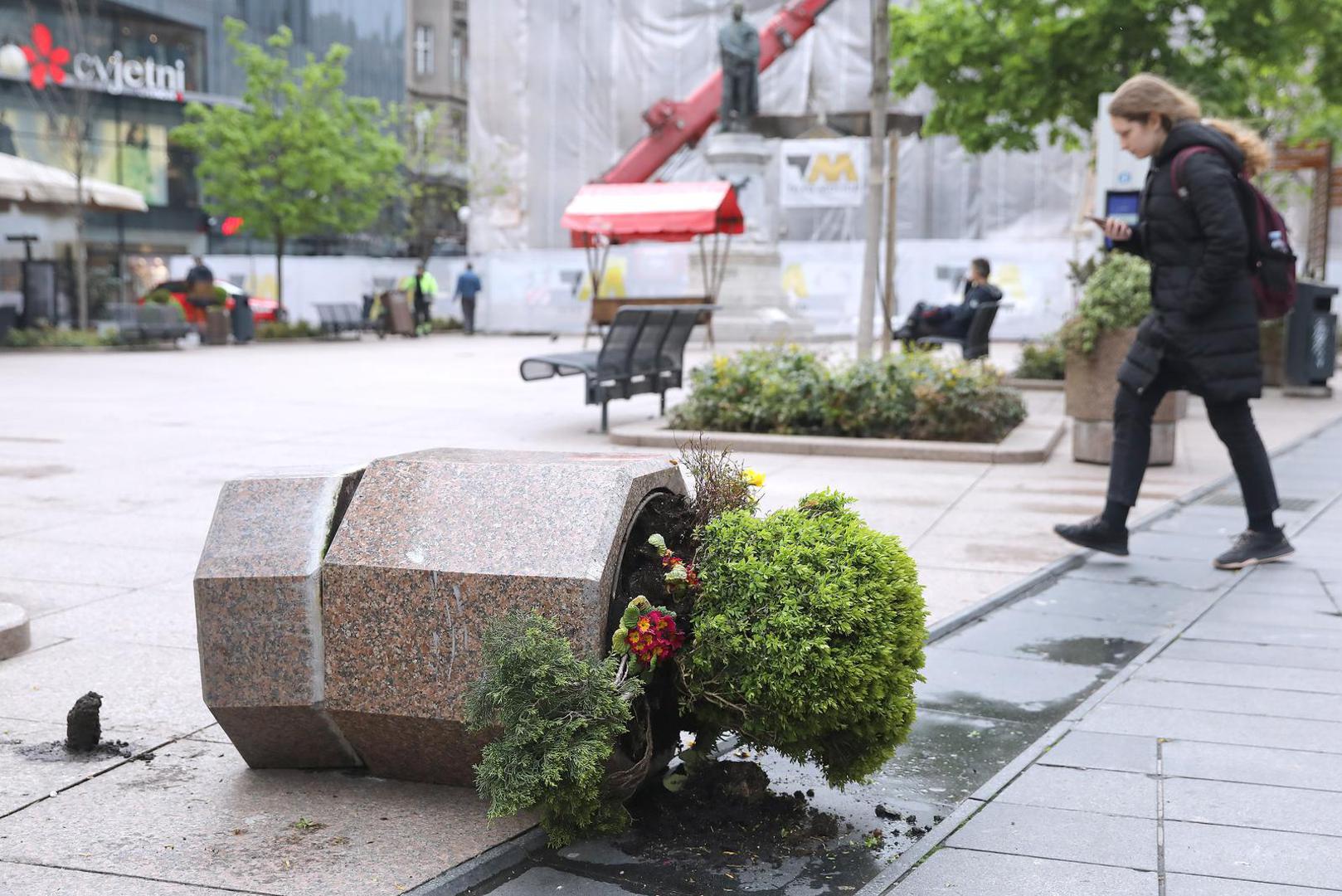 FOTO Žardinjera na Cvjetnom trgu nije preživjela vikend, nekome se očito zamjerila...