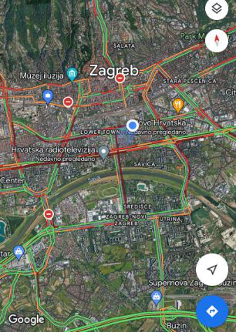 'Promet je u kolapsu, sad već 20 minuta sjedim u tramvaju, koji stoji na mjestu na Vukovarskoj. I to u tramvaju koji je preusmjeren (linija 4). Automobili isto stoje u golemoj koloni. Kada pogledate na Google mapsu, vidite kako se sve crveni', kaže jedna čitateljica za Večernji.hr.