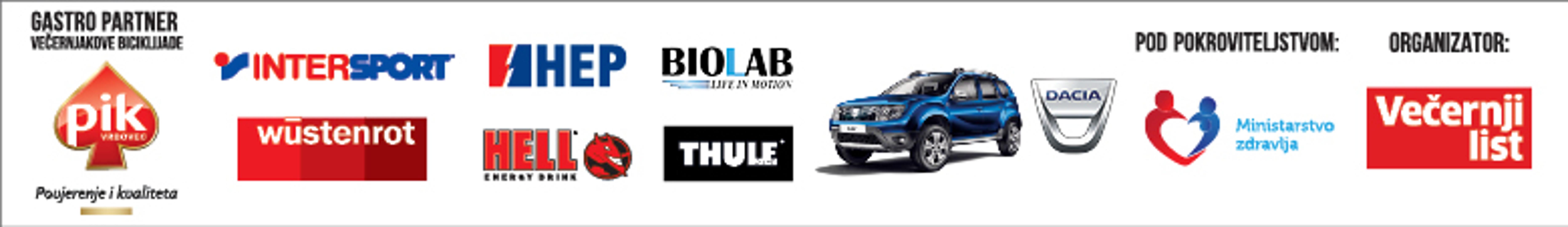 Ove godine našu biciklijadu podržavaju: Intersport, HEP, Biolab, Wüstenrot, Thule, Hell Energy Drink i Dacia.