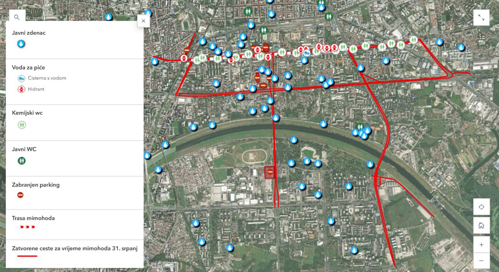 Ulica grada Vukovara (oba kolnika) od raskrižja s Ulicom Vjekoslava Heinzela do Avenije Marina Držića zatvara se za sav promet od 13:00 do 19:15.Sajmišna cesta od vojarne 1. gardijske brigade Tigrovi – Croatia prema mostu Mladosti biti će zatvorena za sav promet od 13:00 do 16:00 sati. Ulica Florijana Andrašeca od Ulice grada Vukovara do Tratinske biti će zatvorena za sav promet od 15:30 do 19:30. Također, u istom periodu biti će zatvorena Ulica grada Vukovara od Savske ceste do raskrižja s Tratinskom i Ozaljskom.