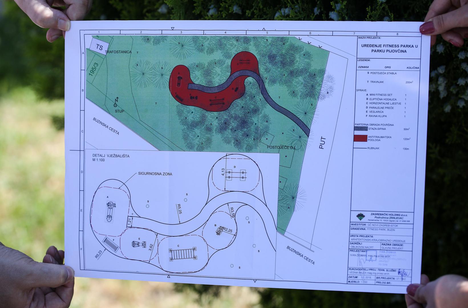 Sprave bi stanovnike tog kvarta trebale dočekati nakon povratka s godišnjih odmora budući da bi, objašnjava predsjednik Mjesnog odbora Mario Kranjčina, fitness-park trebao biti dovršen do jeseni. Desetak sprava smjestit će se u središtu Buzina, kao dio tamošnjeg parka Pijovčina. Ljubitelji fitnessa vježbat će moći na oko 500 četvornih metara površine opremljene gumenom podlogom.