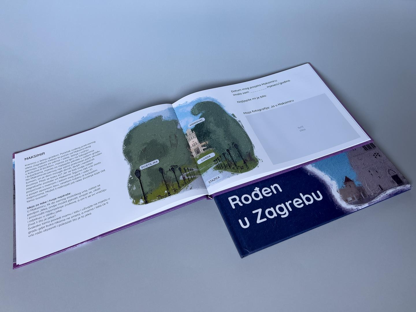 Upravo je tako nastala ideja o slikovnicama za djevojčice i dječake, Rođena u Zagrebu i Rođen u Zagrebu, dvije zasebne slikovnice s naslovnicama tamnoplave i svjetloljubičaste boje s prepoznatljivim zagrebačkim motivom zagrebačke katedrale. Sedam omiljenih zagrebačkih lokacija i znamenitosti, kao što su Maksimir, Zrinjevac, Trg bana Jelačića, Ilica, zagrebačka katedrala, Gornji grad i Umjetnički paviljon vode sve znatiželjne klince i klinceze, sve rođene u Zagrebu, ali i one koji naš grad tek žele upoznati, sve turiste i zaljubljenike u pustolovine predivnim mjestima našega grada.