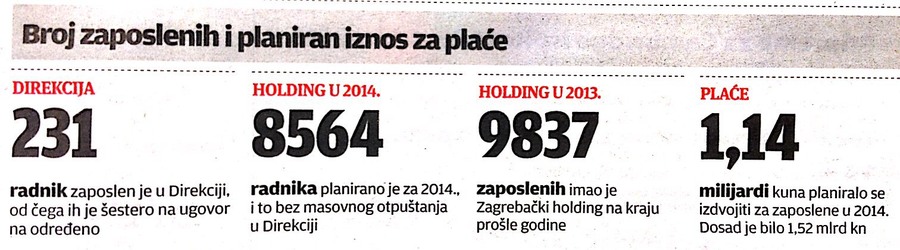 Istodobno Nadzorni odbor nije primio na znanje poslovni plan Holdinga za 2014., a navodno je razlog za odgađanje odluke tehnička pogreška koja će vjerojatno biti riješena već danas. Iako se načelno slažu s Bandićevom inicijativom da se broj zaposlenih u Holdingu smanji, što je već slikovito najavio rekavši “da će dobiti nogicu svi koji su zaposleni na halo”, u upravi Holdinga ne slažu se s njegovom zamisli da se to provodi preko koljena. No, morali su popustiti i Holdingovi pravnici traže model po kojem će ugasiti Direkciju.