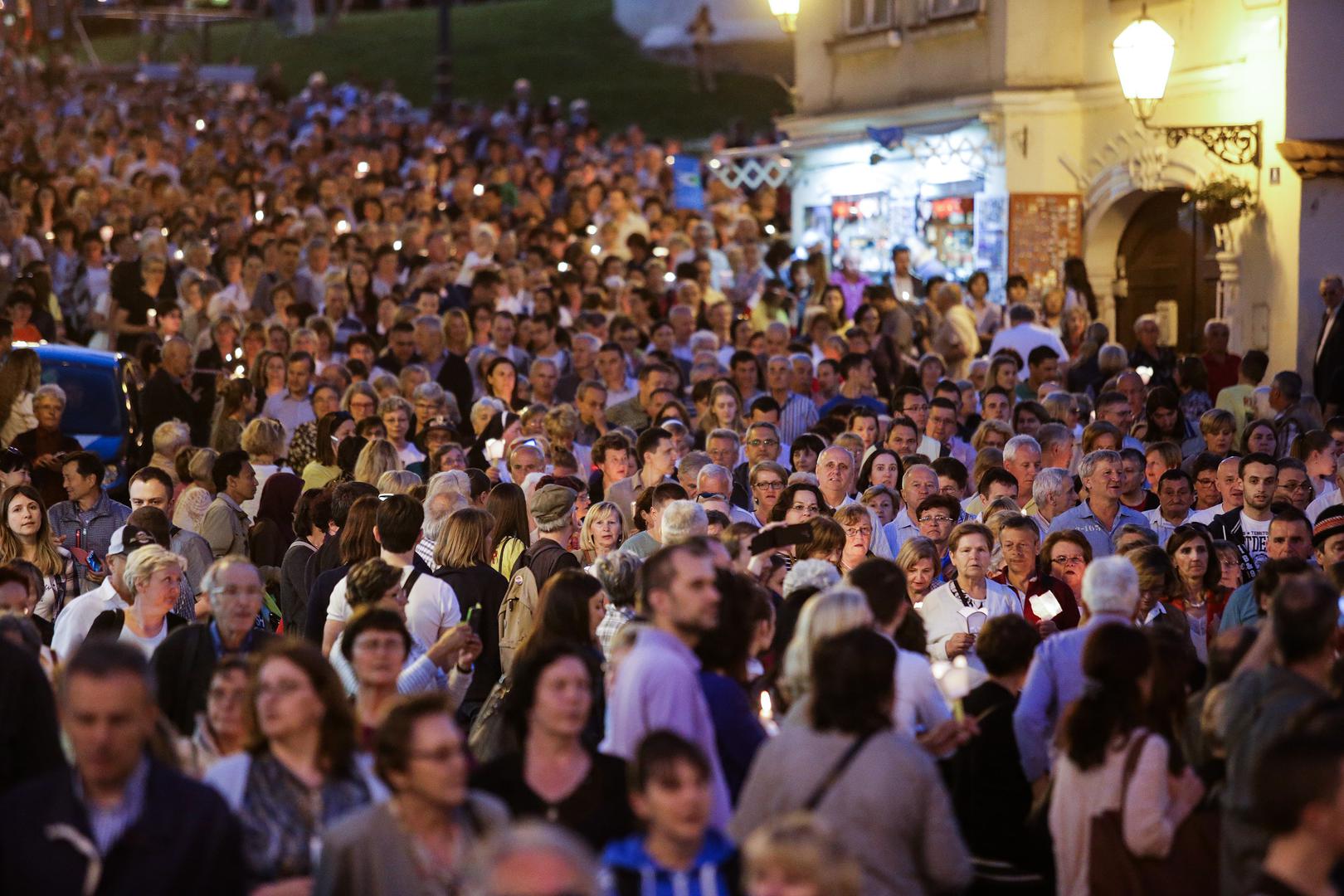 U prepunoj Zagrebačkoj katedrali i na kaptolskom trgu ispred nje, Zagrepčani su sinoć obilježili blagdan Majke Božje od Kamenitih vrata, zaštitnice Zagreba, a procesija sa slikom Majke Božje, koja je zbog radova u Radićevoj ulici išla Mesničkom ulicom, bila je svečanija i velebnija nego dosad, jer se protegnula cijelom Ilicom od Trga bana Jelačića do Mesničke i Kamenitih vrata.