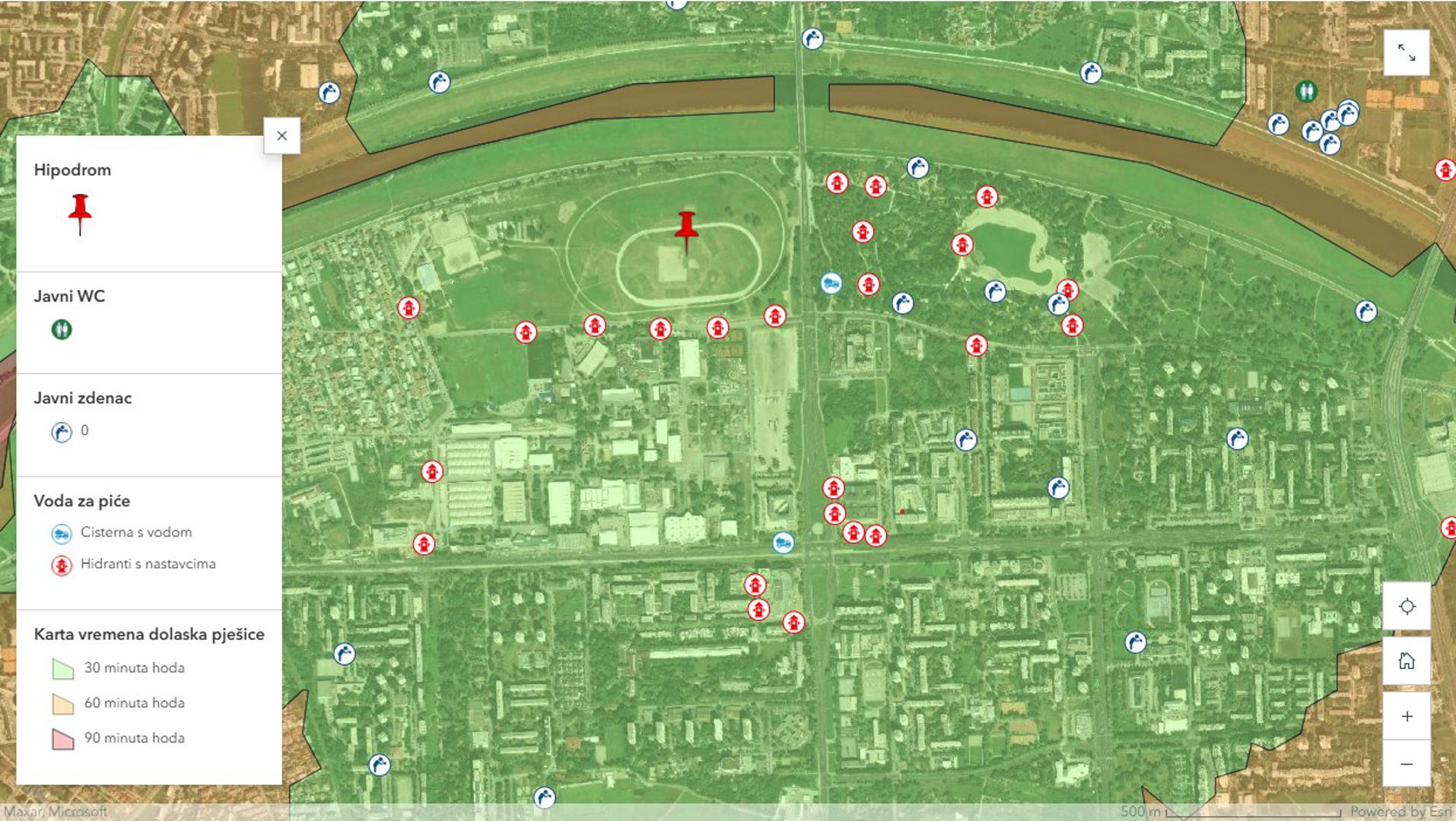 Veliki koncert održat će se na vrući dan, živa će se popesti na više od 30 stupnjeva, što znači da će pristup pitkoj vodi biti od presudne važnosti. Kako bi na jednom mjestu imali sve najvažnije servisne informacije, Grad je podijelio ovu web stranicu i kartu na kojoj se nalaze svi javni zdenci, kao i lokacije na kojima su hidranti za vatrogasce prenamijenjeni u slavine za vodu. Karta se može zumirati, a na njoj je također označena procjena koliko će pješaku trebati vremena hoda da stigne do Hipodroma. Hodati će se, naravno, morati, budući da će zbog obustave prometa vožnja automobilima u zoni koncerta biti nemoguća. Na stranici je prikazano i gdje su javni WC-i.