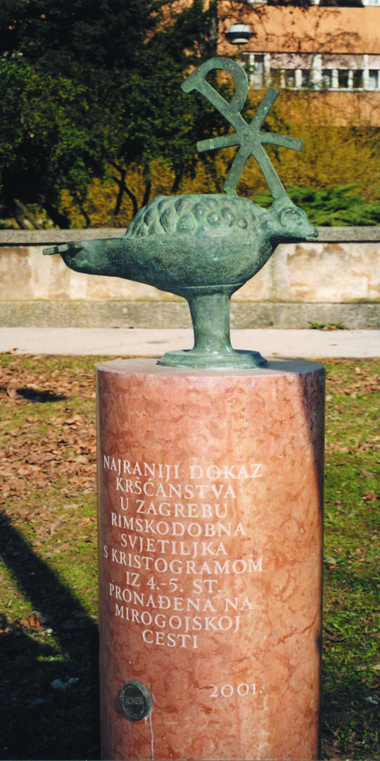 Spomenike arheološkim nalazima, kojih na području Zagreba samo iz doba Rima ima 127, počeli su postavljati 1990. godine, neposredno prije 900. rođendana Zagreba, a na taj je način, kažu, napravljena svojevrsna inverzija.