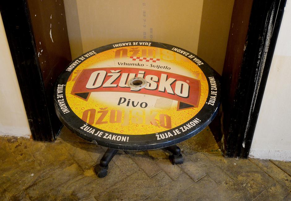 Izložba tako ima na desetke priča, legendarni zeleni svijetleći znak koji je nekoć stajao na krovu Sidra dok ga dvojica vraćajući se s izlaska nisu ukrala, tamošnje prepoznatljive zidne daske sa siluetama glazbenih ikona Boba Marleya i Johnny Stulića, kvake s broda... A ne može ništa proći ni bez šanka i barskog stolića.
