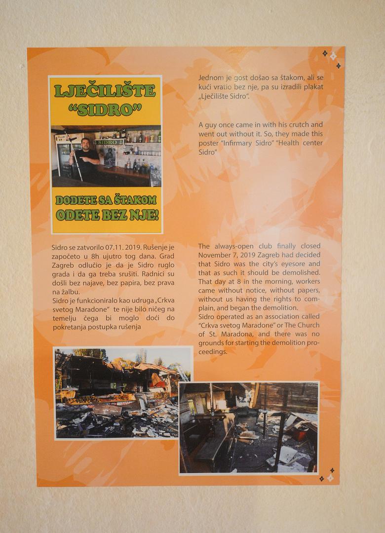 Jedni su se tamo upoznali, zaljubili na prvi pogled pa zatim i zaručili te vjenčali. Drugi su proživjeli najljepše sate svojeg života, trećima su ostale srcu blisku uspomene i nova prijateljstva, dok se neki, pak, šale kako se ne sjećaju apsolutno ničeg. Kultni zagrebački noćni klub Sidro nedaleko od okretišta tramvaja kod Savskog mosta, nekoć je, odnosno do prošlog listopada dok nije demoliran, bio omiljeno mjesto za izlazak svih generacija, od 18 pa sve do 70 godina. Koliko je bio neizostavan dio života Zagrepčana može se vidjeti i u novom dijelu stalnog postava nazvanom "Sidro se vraća" u Muzeju mamurluka. Adresa je Preradovićeva 5, otvorena je svakim danom 13 do 21 sat, a cijena ulaznice je 30 te za studente 25 kuna.