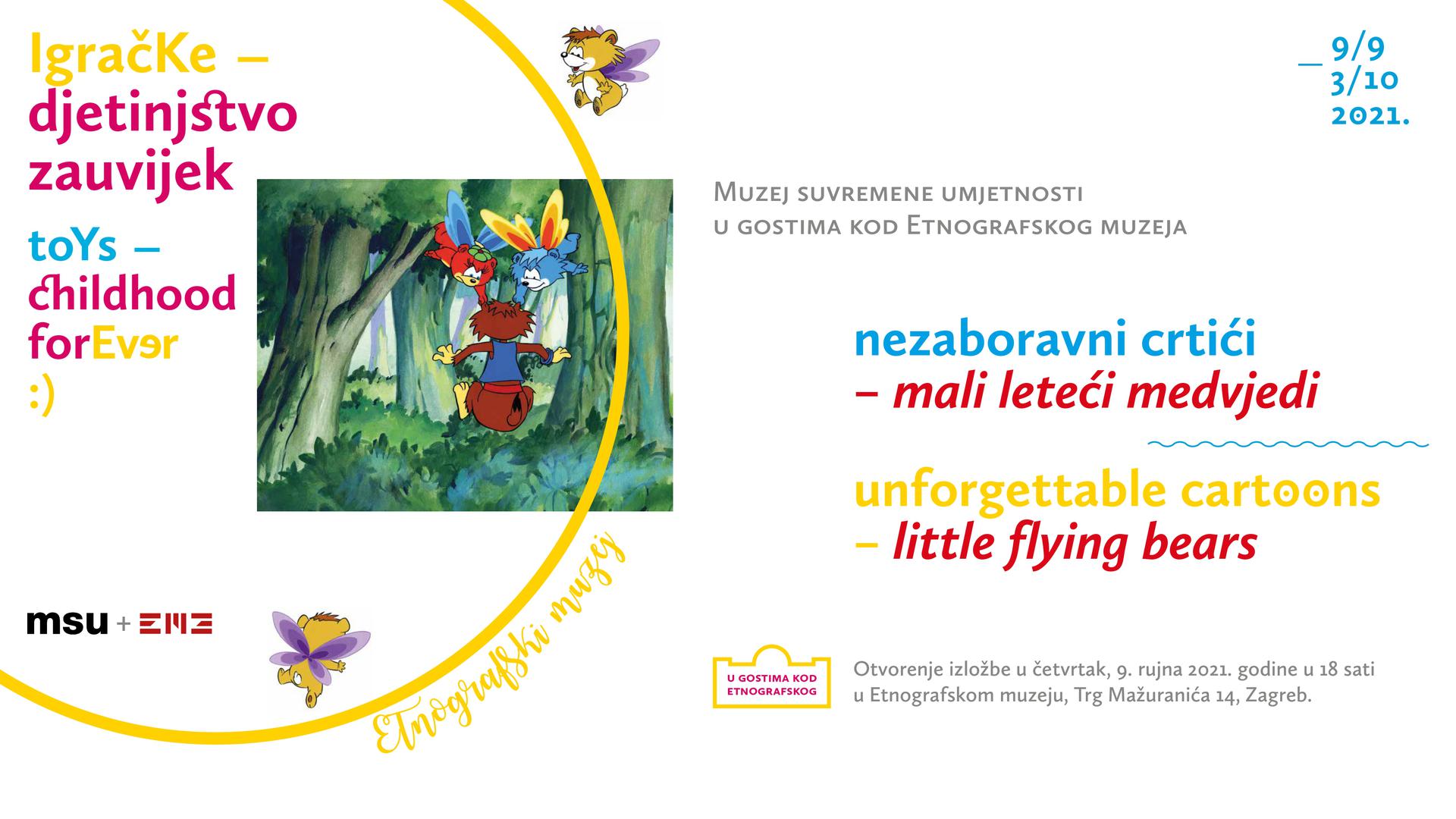 U sklopu velikog projekta "Igračke - djetinjstvo zauvijek" Etnografski muzej u rujnu postaje domaćin gostujuće izložbe Muzeja suvremene umjetnosti u Zagrebu naziva "Nezaboravni crtići – Mali leteći medvjedi“. Otvorenje izložbe je u četvrtak u 18 sati, a posjetitelji ju mogu razgledati i na trenutak se vratiti u djetinjstvo sve do 3. listopada.