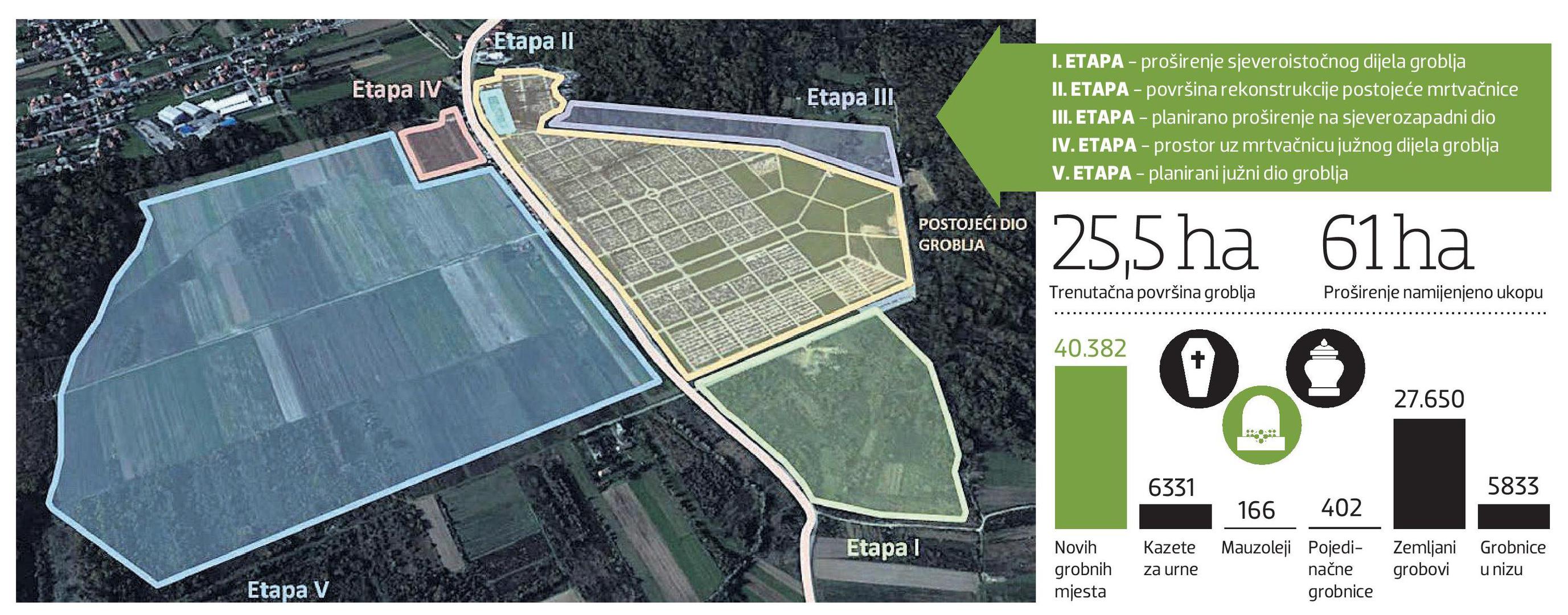– Planirano je proširenje površina za ukop na sjeverozapadnom i sjeveroistočnom dijelu – piše u prijedlogu urbanističkog plana, a upravo na tom bi se dijelu trebala napraviti i interna prometnica te parkiralište s gospodarskim dijelom groblja. Na jugu bi se trebao smjestiti “ceremonijalni sklop s otvorenim i zatvorenim oproštajnim prostorom”, odnosno nova mrtvačnica, ali i crkva. Na potezu između mrtvačnice sjevernog i južnog dijela groblja nalazit će se prodajni objekti, a mislilo se i na to kako će Zagrepčani doći do svojih najmilijih pa se planiraju dva nova autobusna stajališta na Aleji mira. Izgradit će se i biciklističke staze, urediti novi pločnici te postaviti “prigodna” rasvjeta.