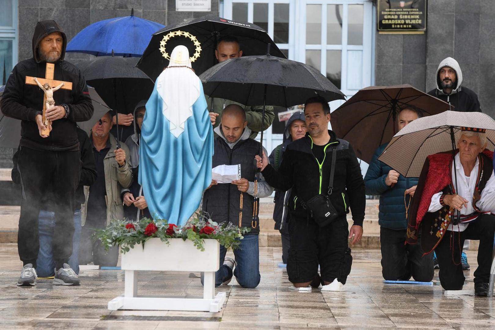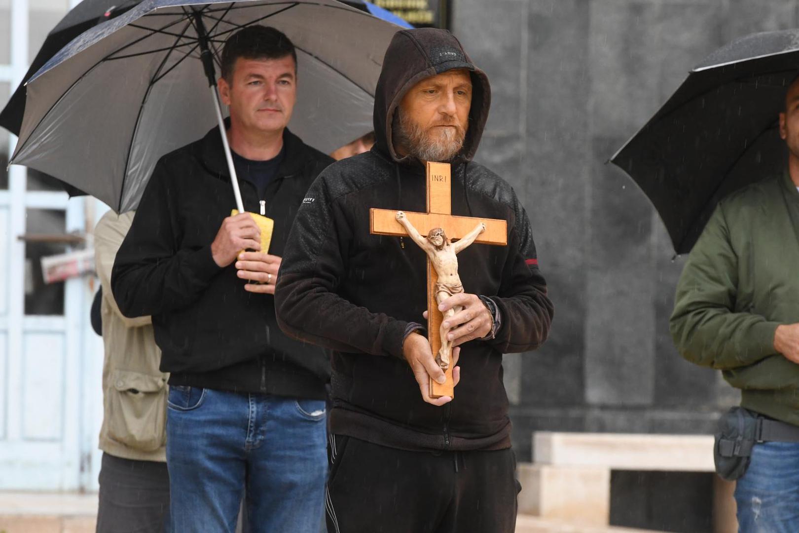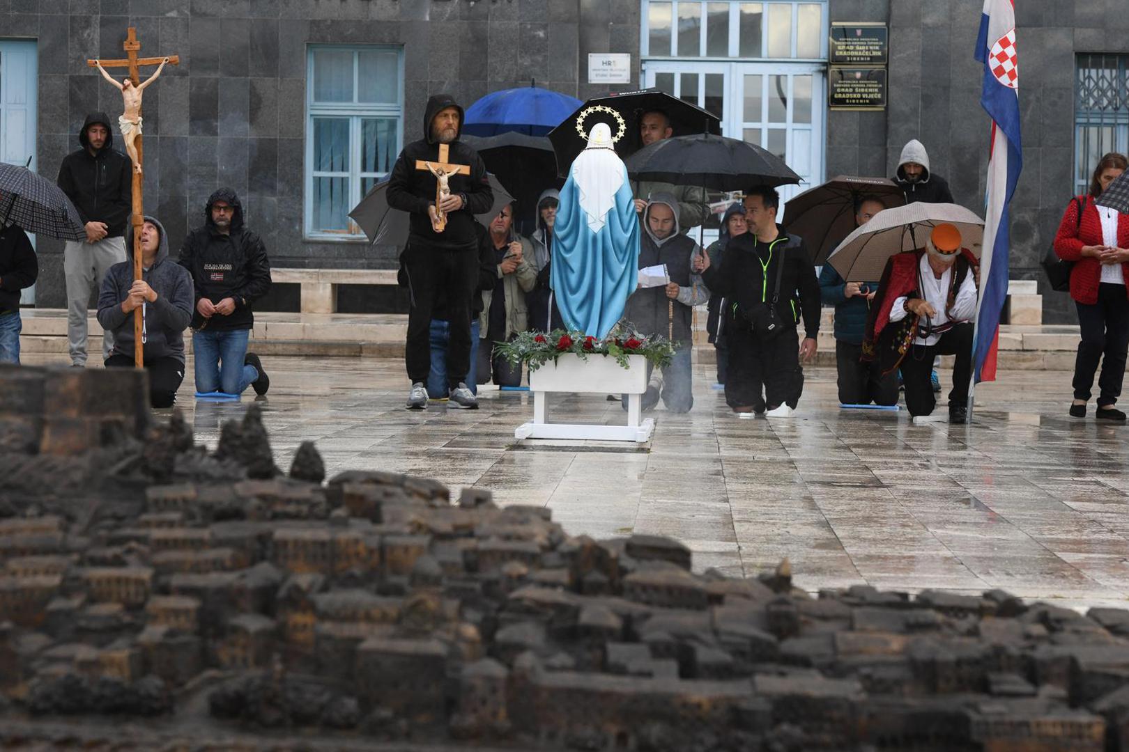 04.11.2023., Split - Peristil, prva subota u studenom molitelji ponovno na trgovima, u Splitu ovog puta uz kisu i bez performera. Photo: Ivana Ivanovic/PIXSELL