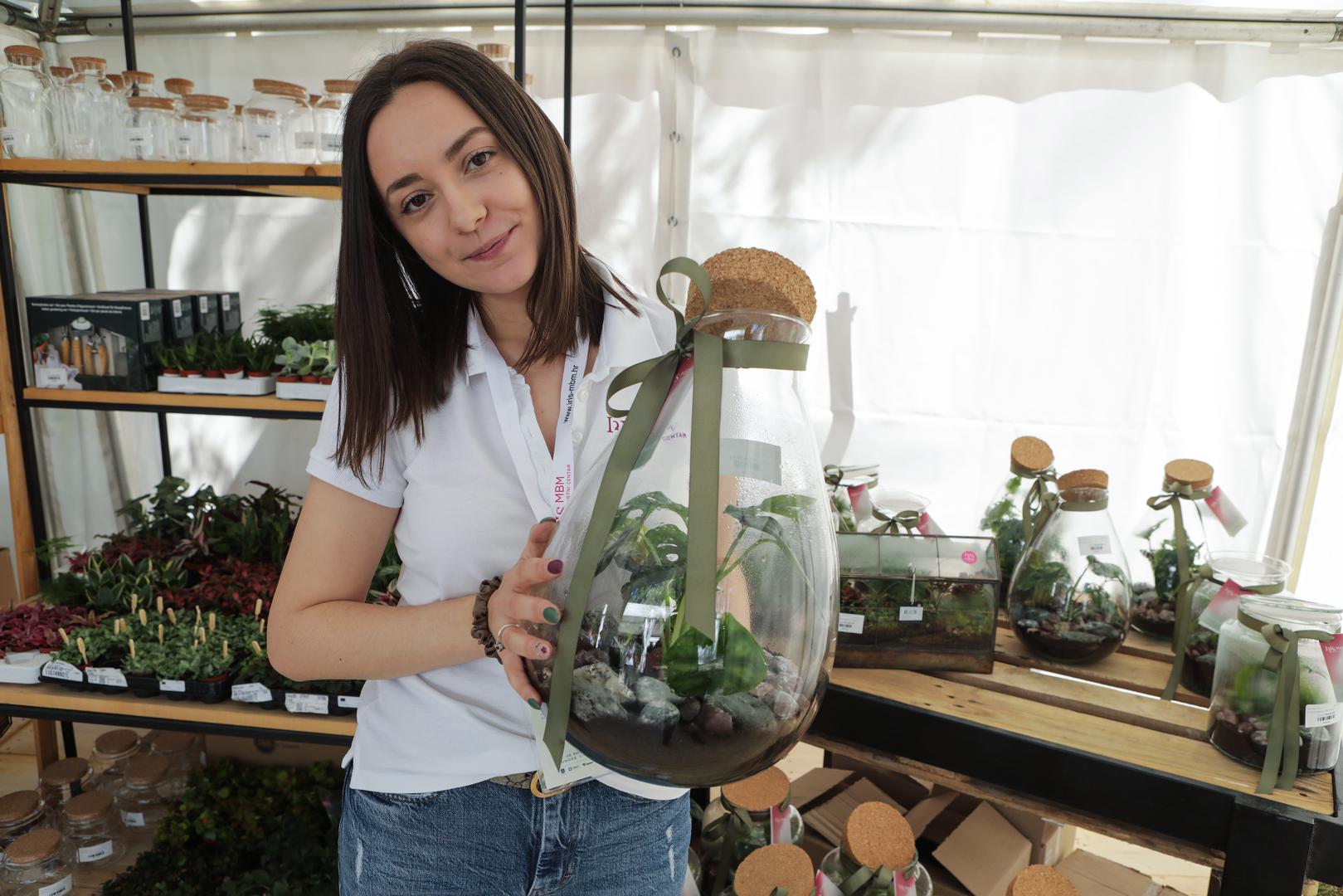– Za izradu svijeća potrebna je brzina jer nakon lijevanja voska u kalup i močenja u boje preostaje desetak minuta za rezbarenje. Slično je i sa sapunima, baza se topi, lijeva u kalupe i rezbari – objašnjava okružena svojim "cvijećem" čije se cijene kreću od 30 za manje do 250 za veće primjerke. Kako proizvodi od konoplje u posljednje vrijeme postaju sve popularniji, i njih se može naći na Floraartu, pa se tako na štandu obrtnika Željka Hajeka nude losioni za tijelo, melemi i kreme za lice s tim sastojkom. Šarolikim se eksponatima predstavlja i vrtni centar Iris MBM, a novost su im biljni terariji, i to zahvaljujući suradnji s domaćim brendom Shamai Grin. Osim što vizualno privlače, također su jednostavni za održavanje jer se unutar staklenih terarija nalaze "biljke bebe", a cijene su im od 250 do 600 kuna.