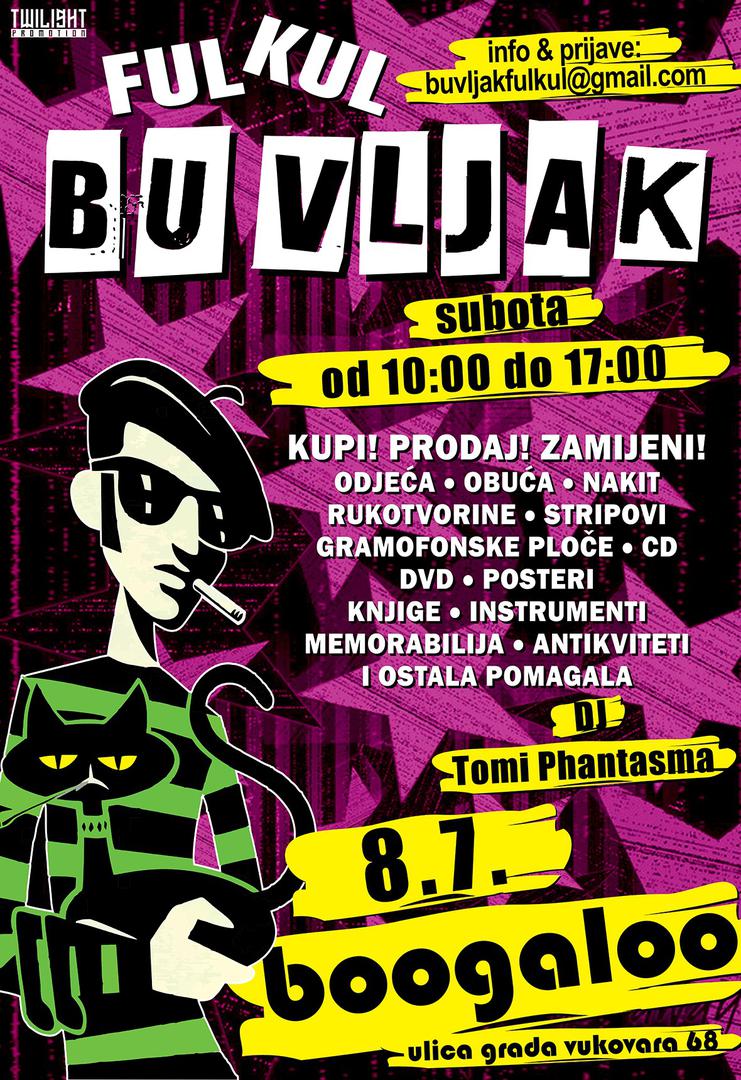 Neka vas vrućina gradskog asfalta ne spriječi da do 17 sati prošećete do platoa Boogaloo kluba gdje se održava posljednji ovosezonski Ful Kul Buvljak. Ulaz je, kao i uvijek besplatan, a bili kupci ili posjetitelji, organizatori obećavaju dobru atmosferu za dnevno druženje. Zbog velikog interesa buvljak je proširen i na plato na ulazu u sam klub.