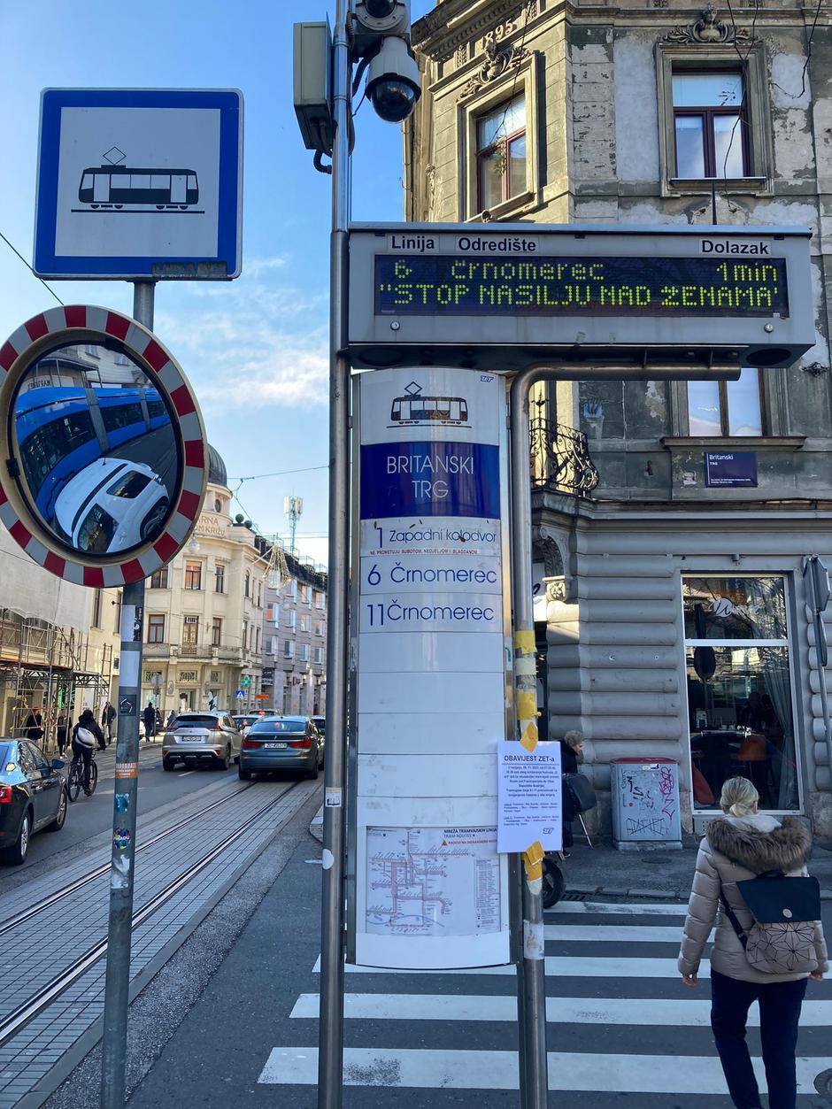 Brojne prolaznike Zagrebom i putnike gradskog javnog prijevoza jutros je oduševila poruka kojom se ZET priključio obilježavanju današnjeg Međunarodnog dana borbe protiv nasilja nad ženama. Poruka "stop nasilju nad ženama" pojavila se danas na svim ZET-ovim displejima s voznim redom u gradu, a njih je oko 150.