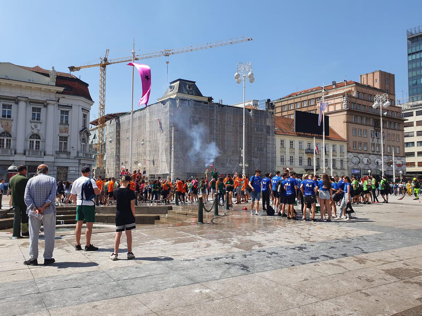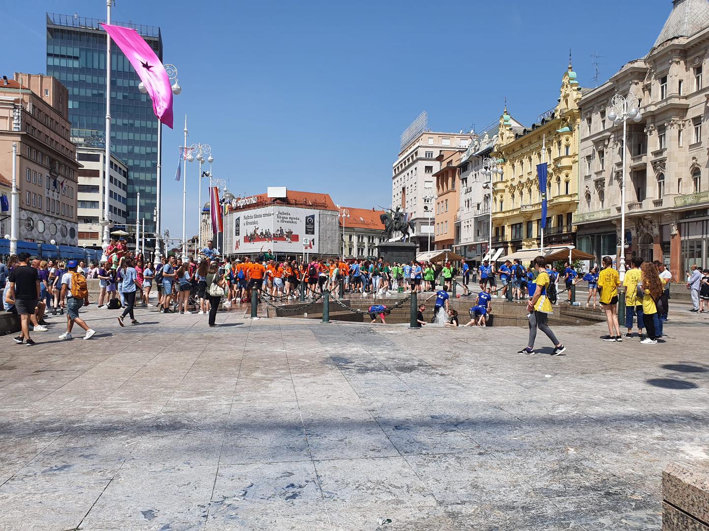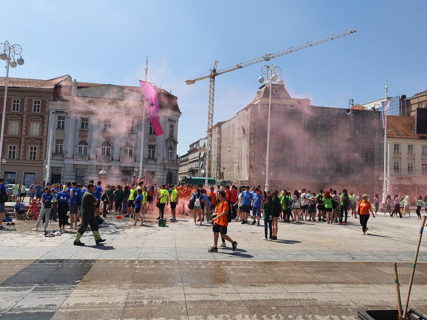25.05.2022., Zagreb - Brojni maturanti u gradu obiljezavalju kraj svog srednjoskolskog obrazovanja pjesmom i nezaobilaznim kupanjem u fontanama. Photo: Marko Lukunic/PIXSELL