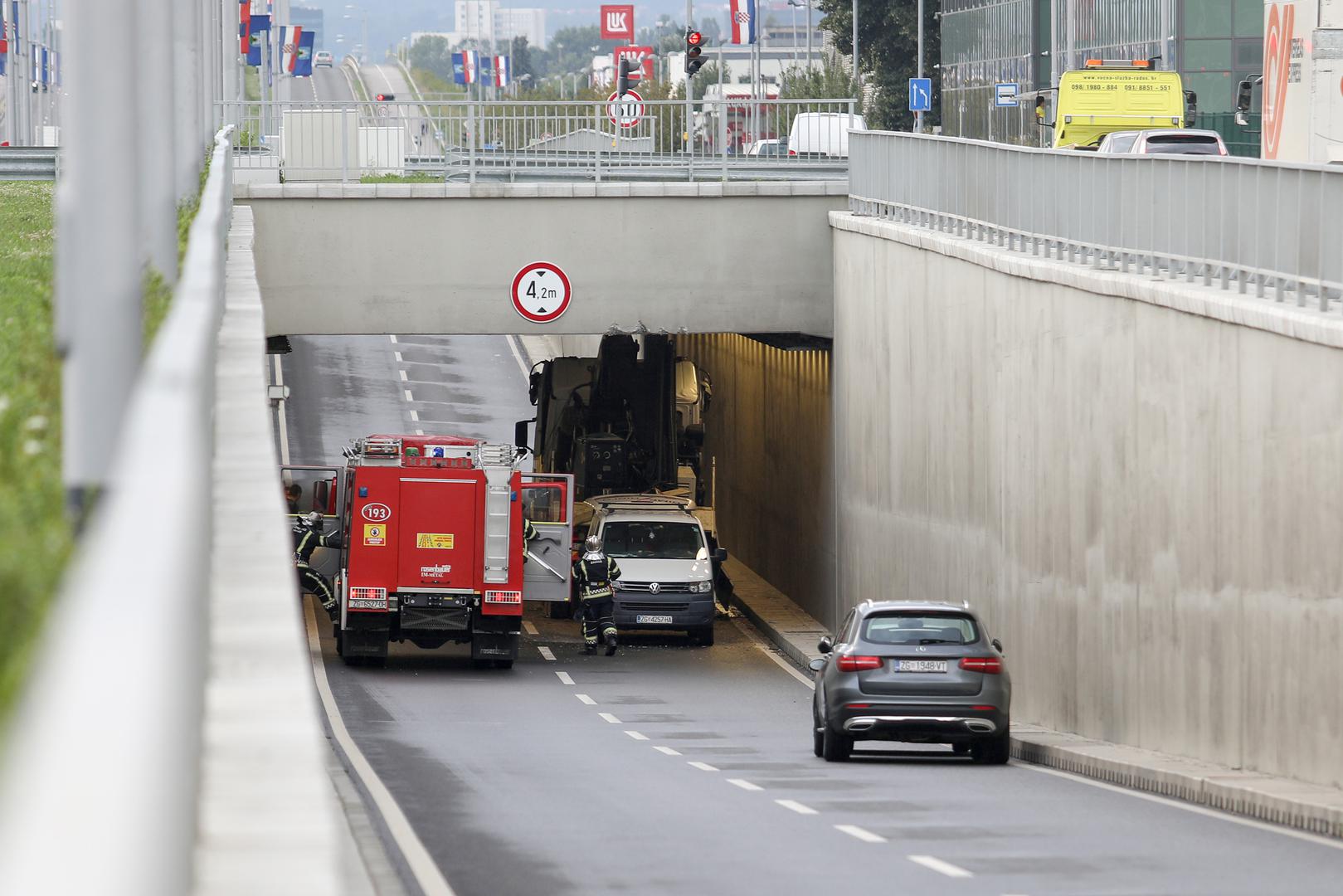 Vozeći prema Slavonskoj aveniji kamion je zapeo za vrh podvožnjaka!