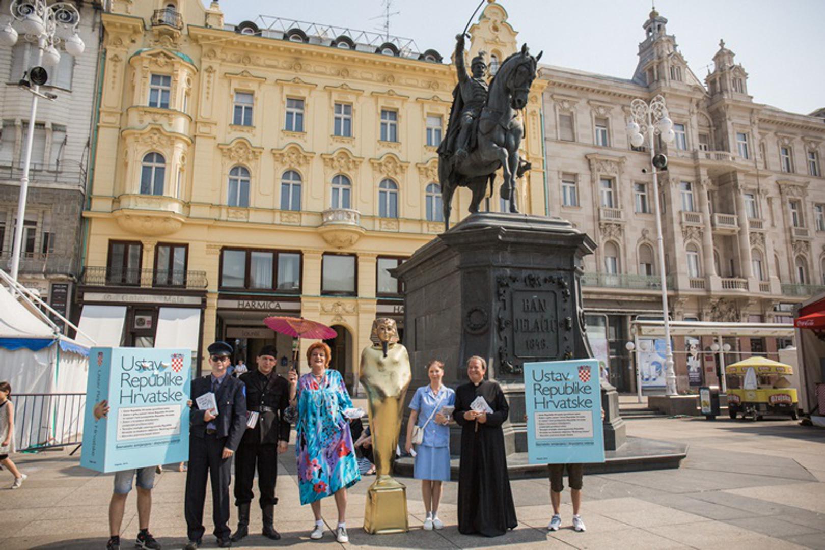 Prilikom šetnje Zagrebom, preko tržnice Dolac, Trga bana Josipa Jelačića, Zrinjevca, pa sve do posjete Hrvatskoj akademiji znanosti i umjetnosti, Cvjetnom trgu i na kraju Hrvatskom narodnom kazalištu, ova mala skupina građanima je dijelila primjerke Ustava Republike Hrvatske te im je pokušala objasniti što se zapravo slavi na taj dan. Na opće oduševljenje, mnogobrojni Zagrepčani su zaustavljali simpatičnu ekipu ne bi li se slikali s njima te kako bi dobili odgovor na glavno pitanje dana –'Znate li što slavimo danas?'.